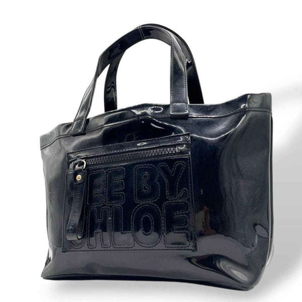 See by Chloé SEE BY CHLOE u15 Black Tote Bag with Large Logo and Silicone, One-Shoulder Handbag, Gold Hardware, Can be Carried Over the Shoulder