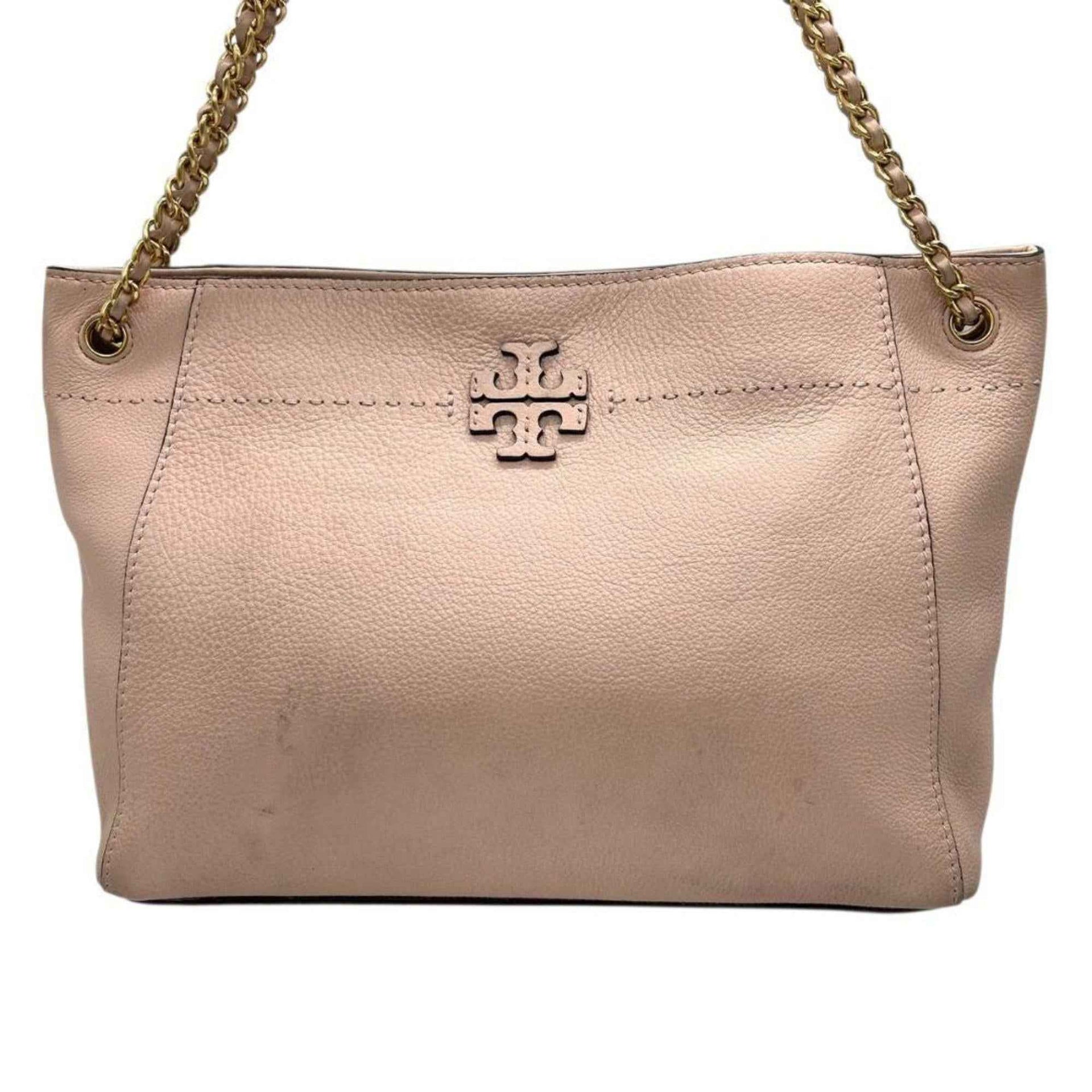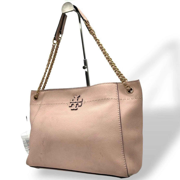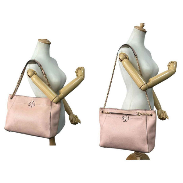 Tory Burch Large Logo 2-Way Leather Tote Bag in Pink, One-Shoulder Handbag/Shoulder with Gold Hardware