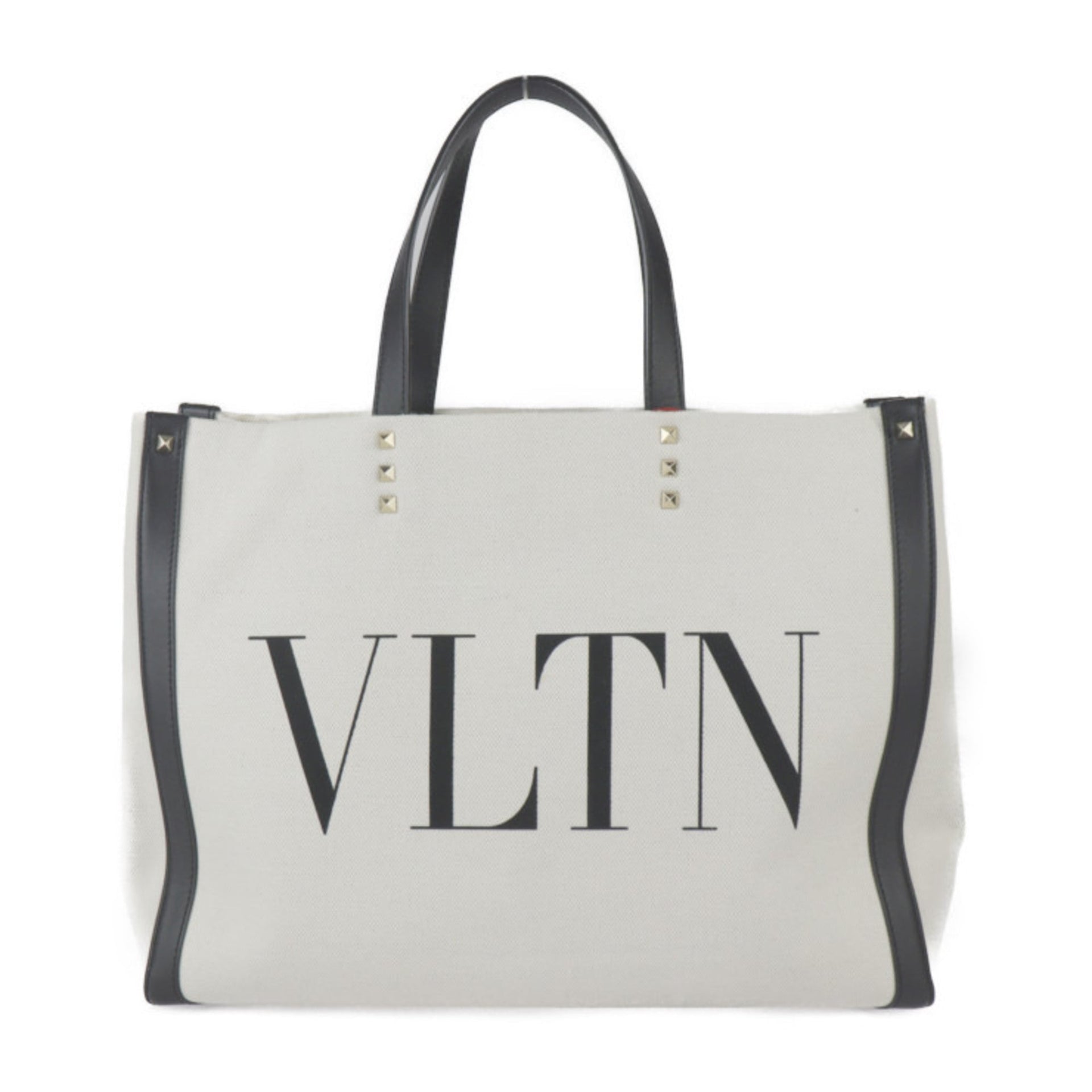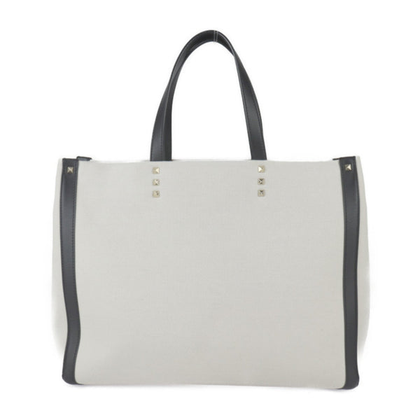 Valentino Garavani VLTN Rockstud Tote Bag TW2B0D21FWB Canvas Leather Natural Black