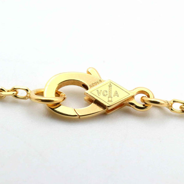 Van Cleef & Arpels Vintage Alhambra Blue Sable Necklace (1PD) in 18K Yellow Gold with Diamonds. Available Blue, Clear, and Gold. VCARP46000.