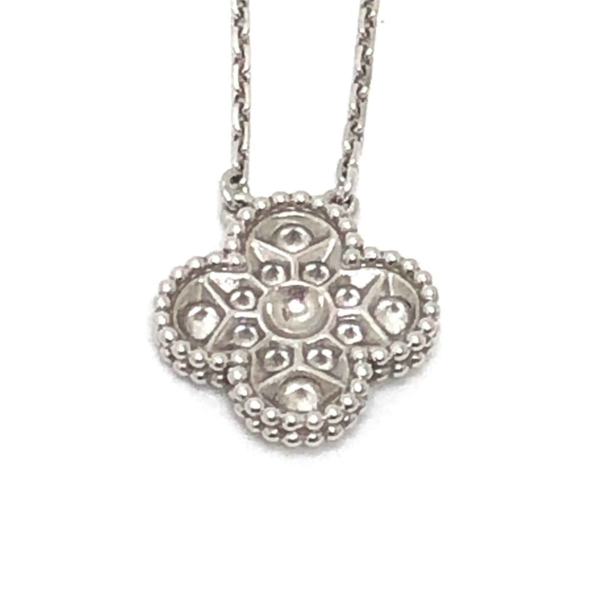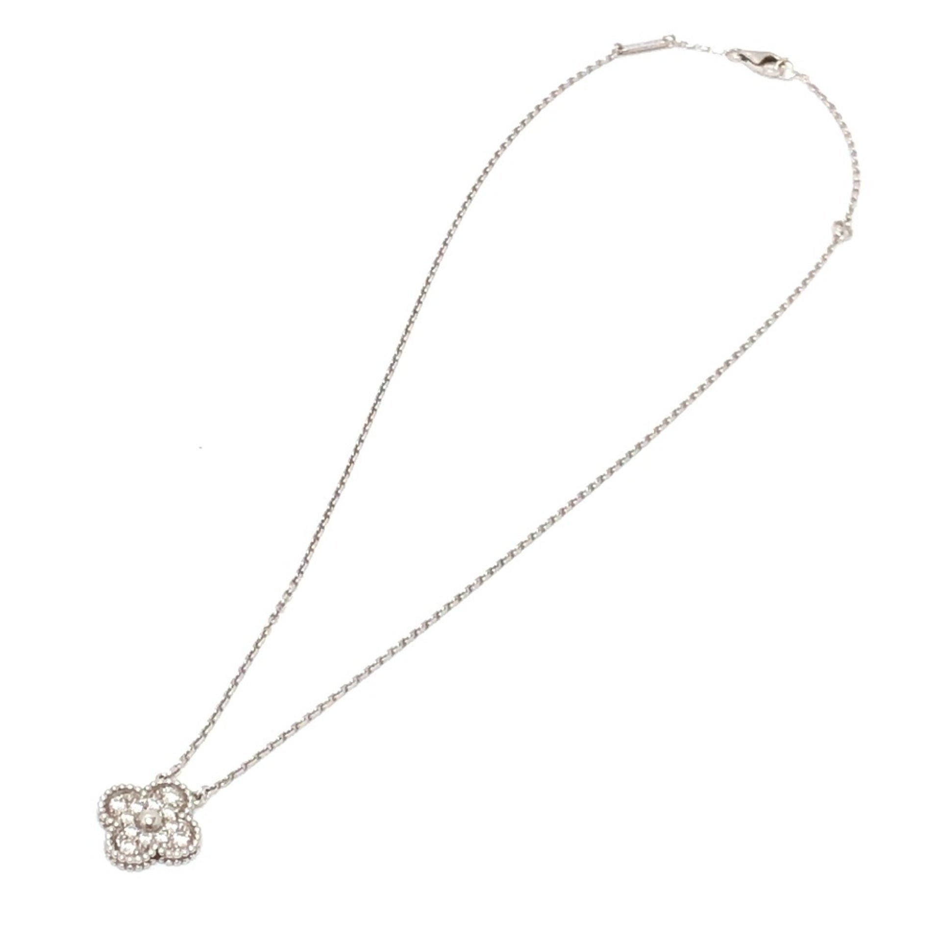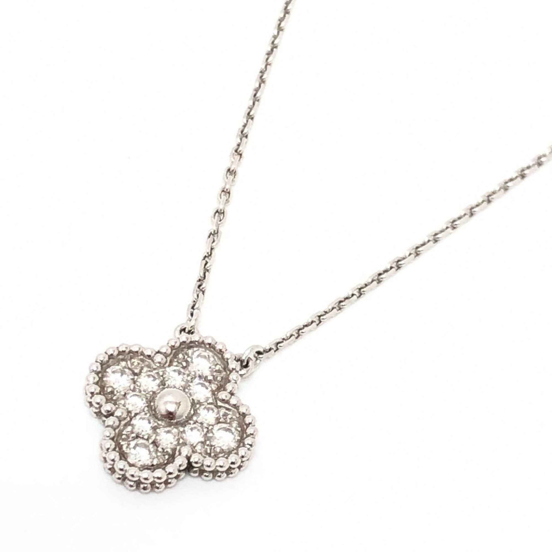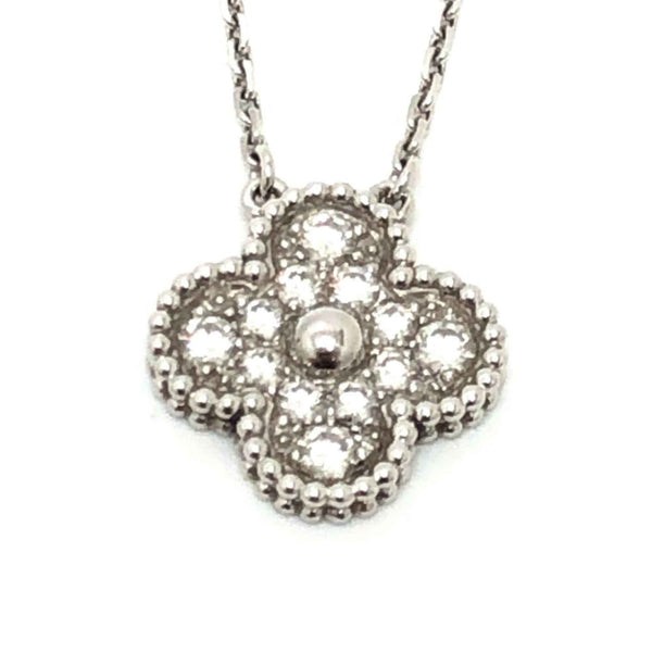 Van Cleef & Arpels Vintage Alhambra Jewelry Pavé Diamond Necklace with Old Hardware, 18K White Gold, Women\'s, Silver