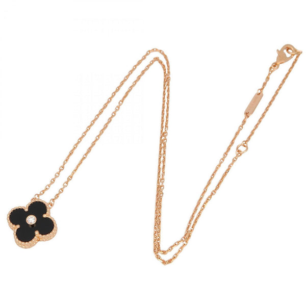 Van Cleef & Arpels Vintage Alhambra Necklace, 1PD, Onyx, Diamond, 18K Pink Gold, Women\'s, Black, Clear, Gold