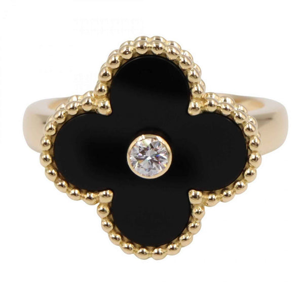 Van Cleef & Arpels Vintage Alhambra Onyx Ring (1PD) in 18K Yellow Gold with Diamonds and Onyx. Available Gold, Clear, Black. (VCARA41000)
