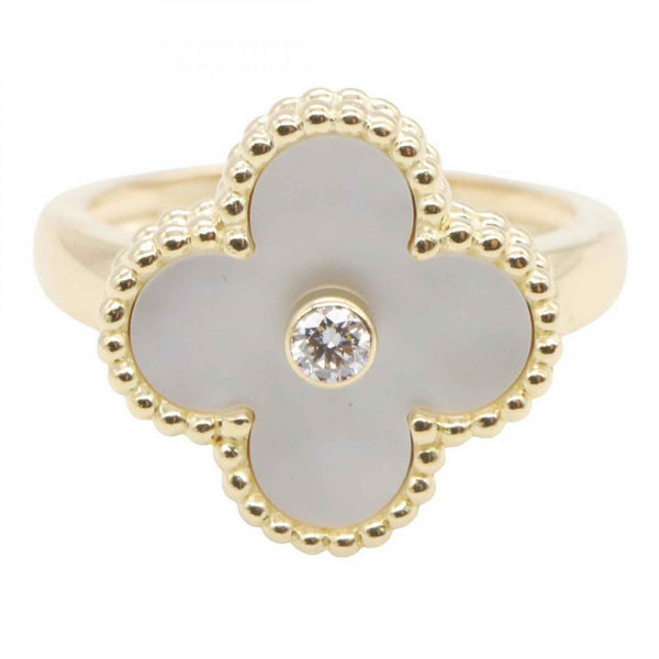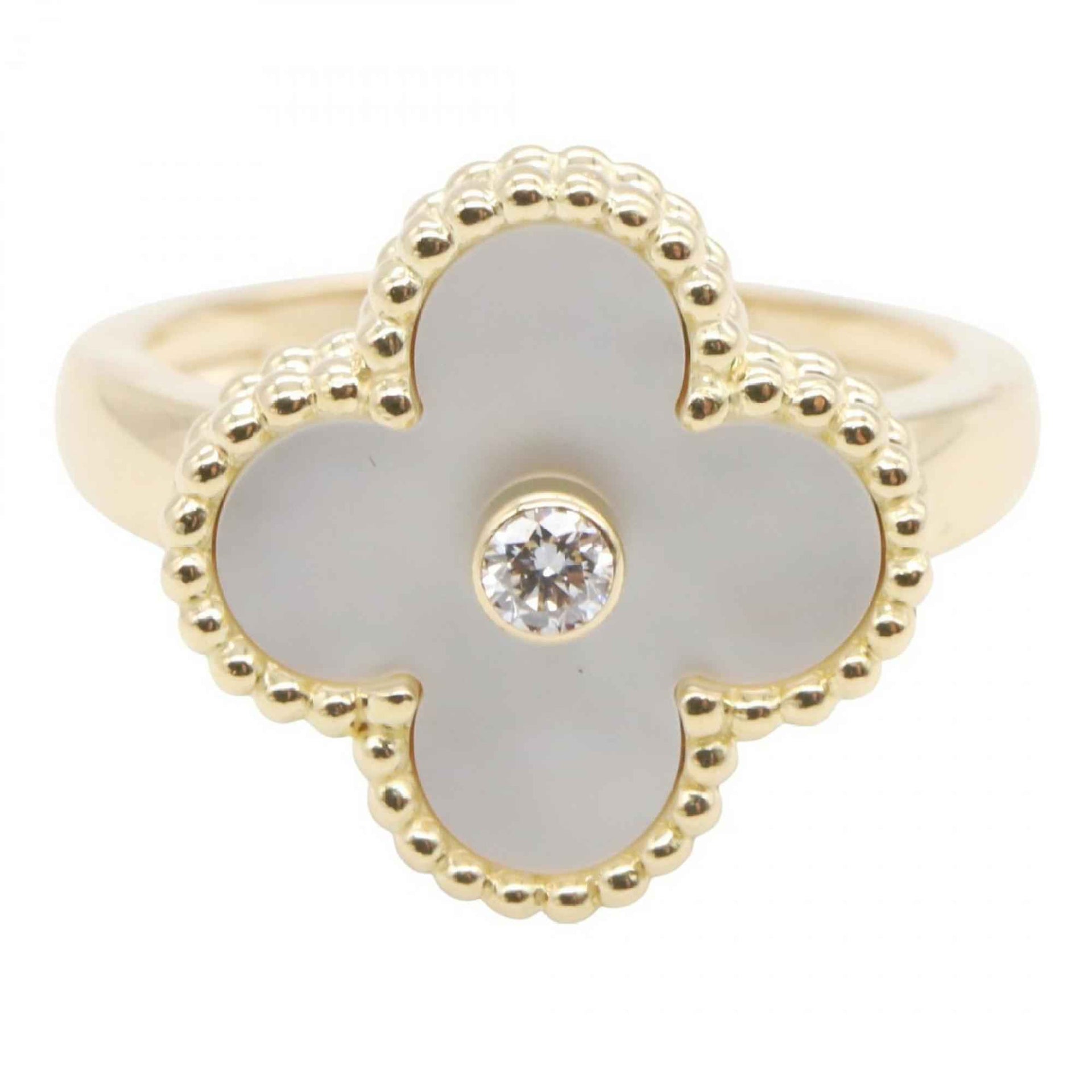 Van Cleef & Arpels Vintage Alhambra Ring, 1PD, Mother-of-Pearl, 18K Yellow Gold with Diamonds, Women\'s, Gold, White, and Clear, VCARA41153