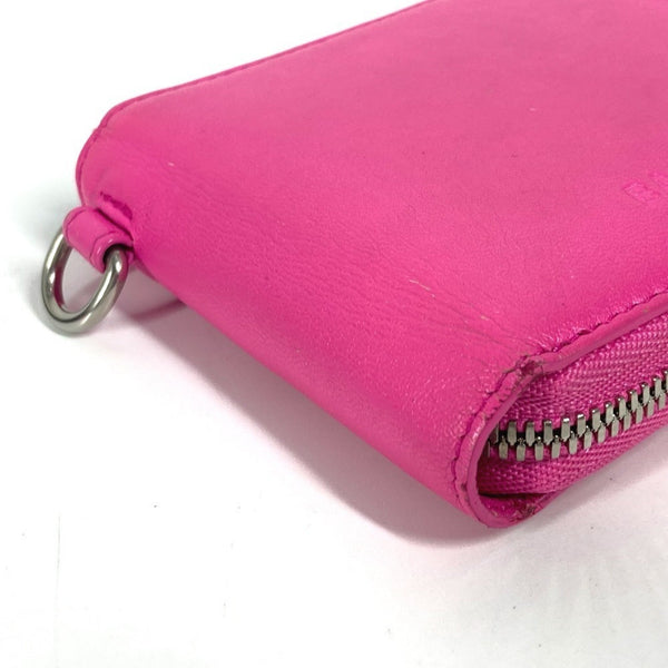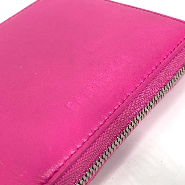 BALENCIAGA 659224 Compact Wallet with Logo Strap, Round Zipper, Bi-Fold Wallet, Leather, Women's, Pink