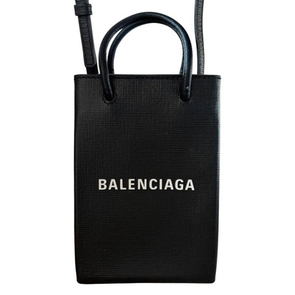 BALENCIAGA Shopping Phone Holder 757773 Leather Shoulder Bag for Men, Crossbody Pouch, Smartphone Pouch