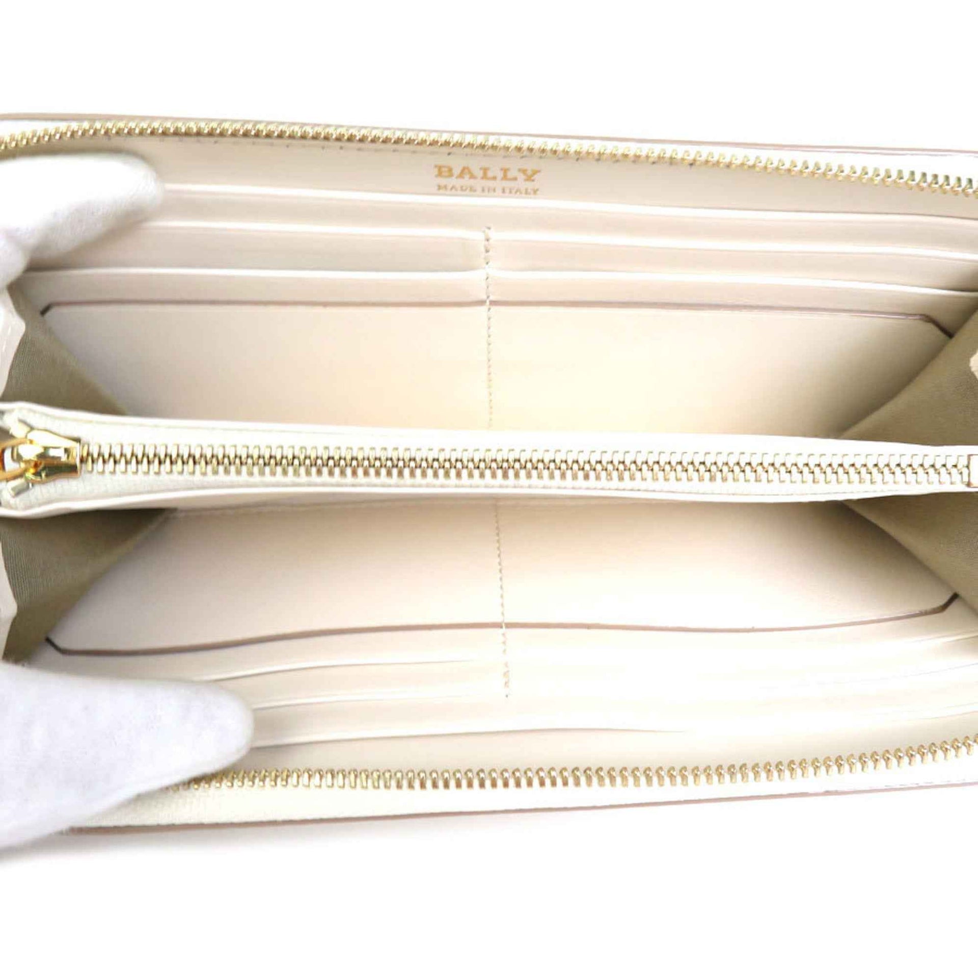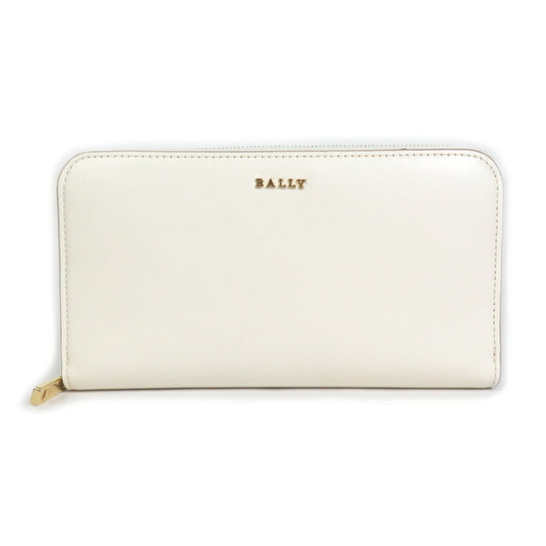 BALLY Round Zipper Long Wallet Leather Ivory Unisex