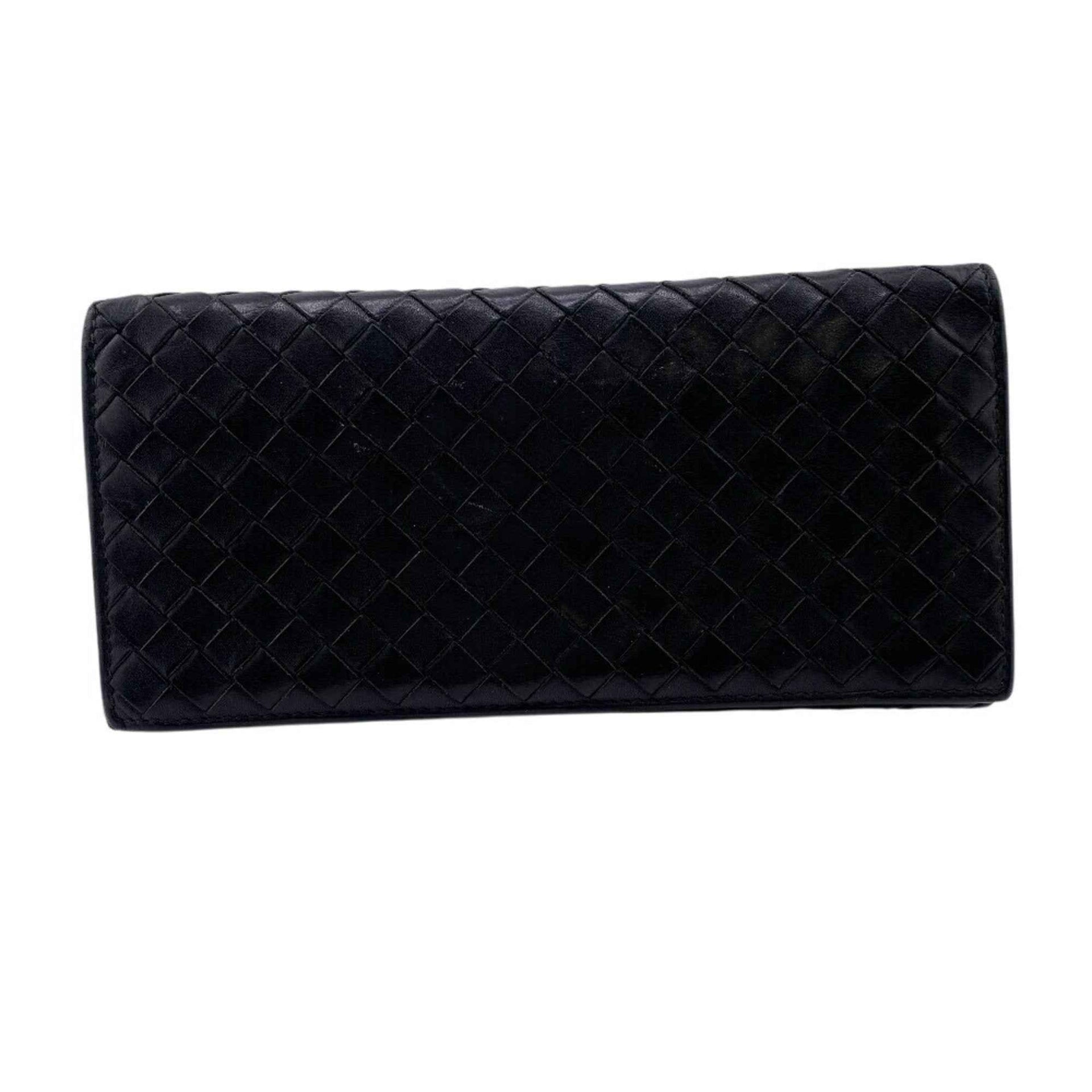 BOTTEGA VENETA Men\'s Long Wallet with Flap and Intrecciato Stretch Strap, Black