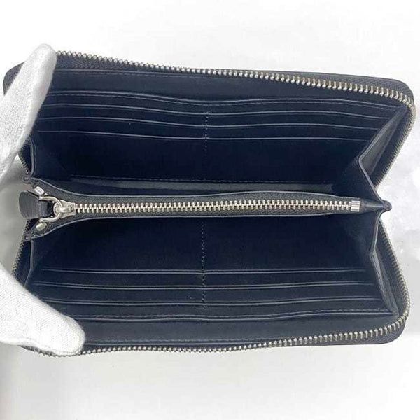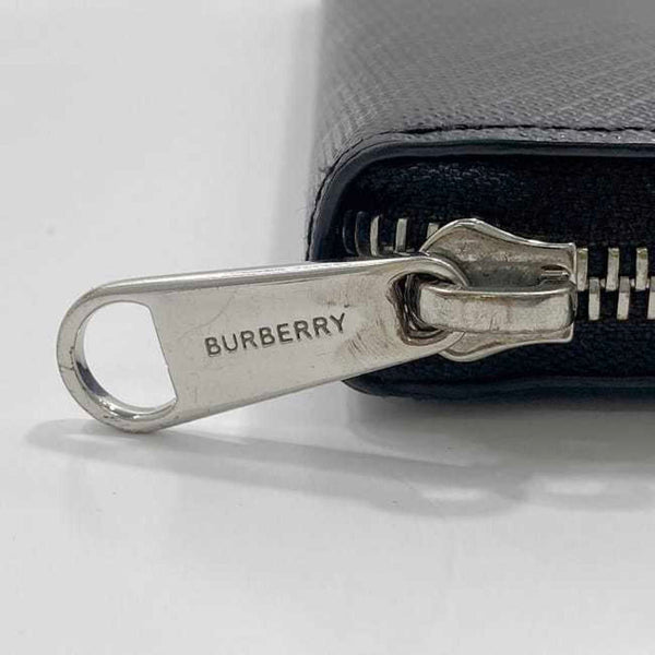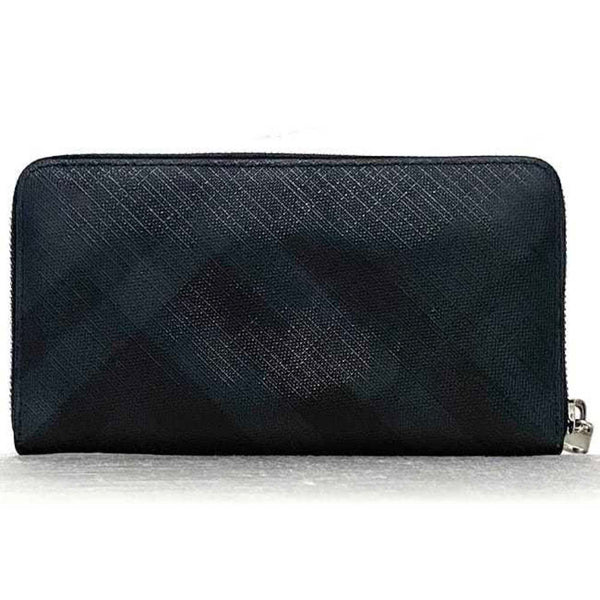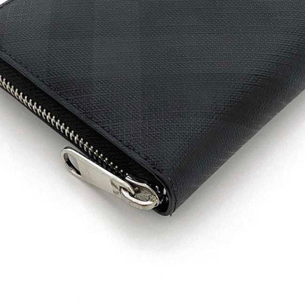 Burberry Round Long Wallet ec-23505 Black PVC Leather BURBERRY Check Pattern Men's Women's Coated