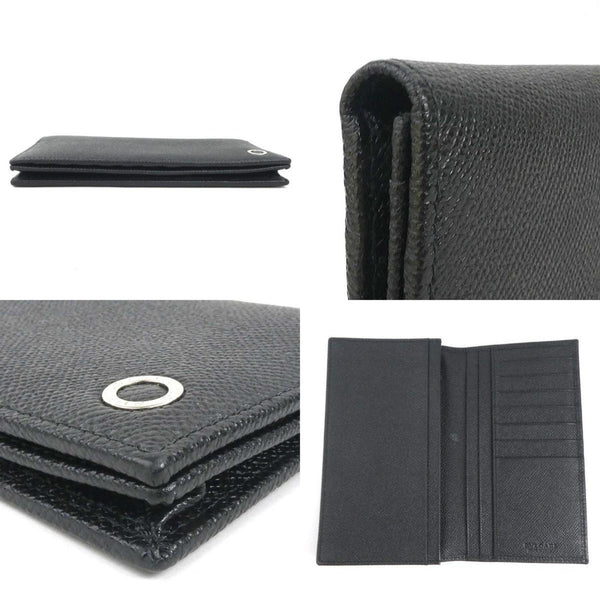 BVLGARI Men's Black Leather Bi-fold Long Wallet r10663a