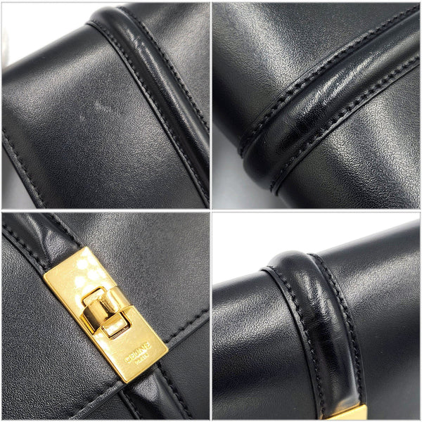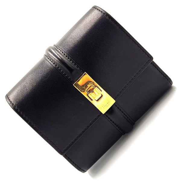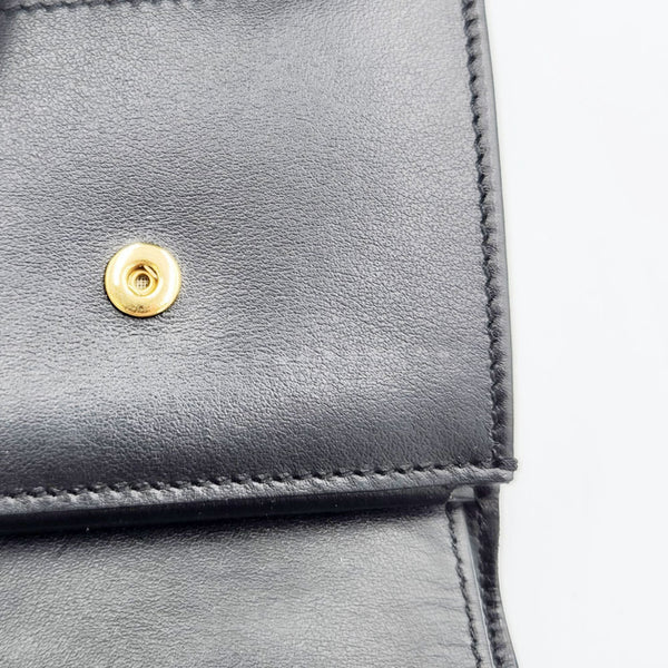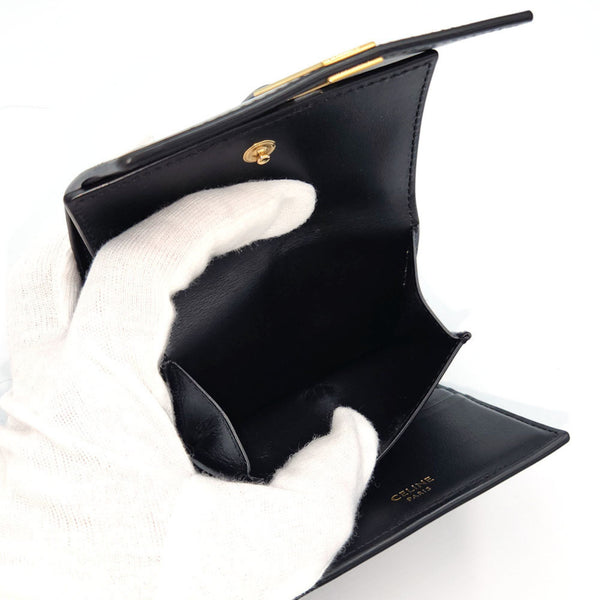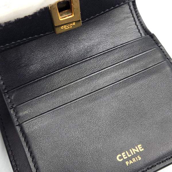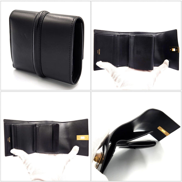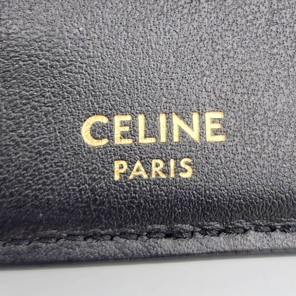 CELINE Trifold Wallet 16 Black Leather Tri-fold Mini Compact Women's