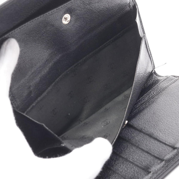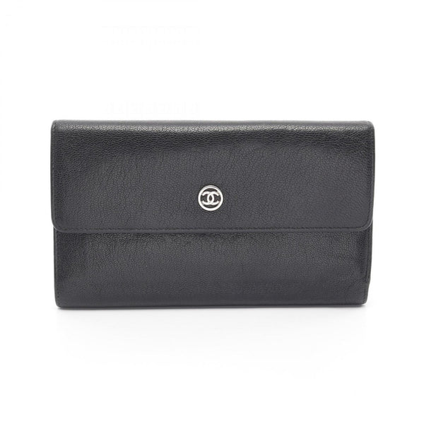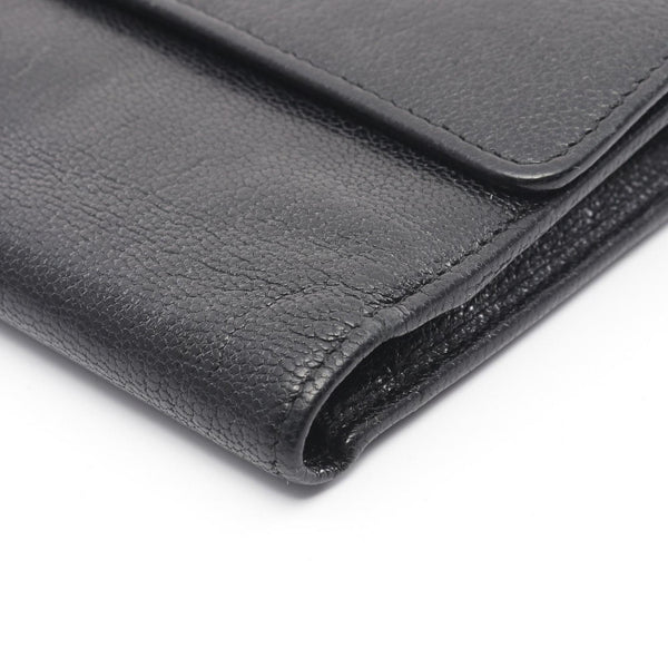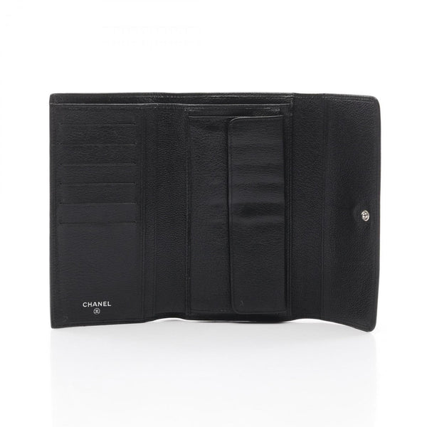 CHANEL Coco Mark Tri-fold Long Wallet Leather Women's Black A33922