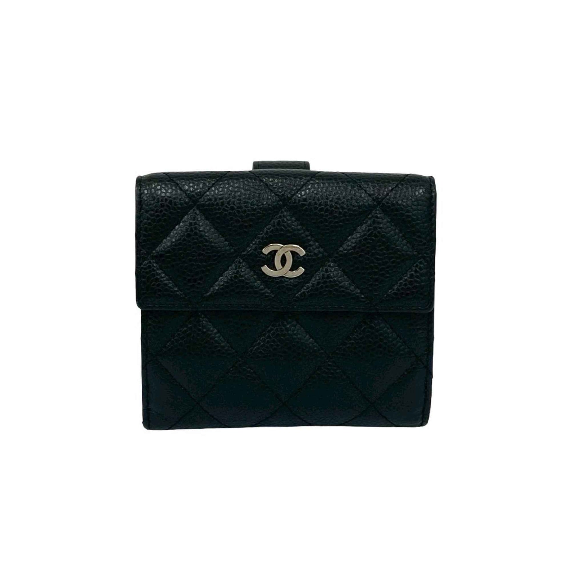 CHANEL Matelasse Coco Caviar Leather Bi-fold Wallet, Black, 28065