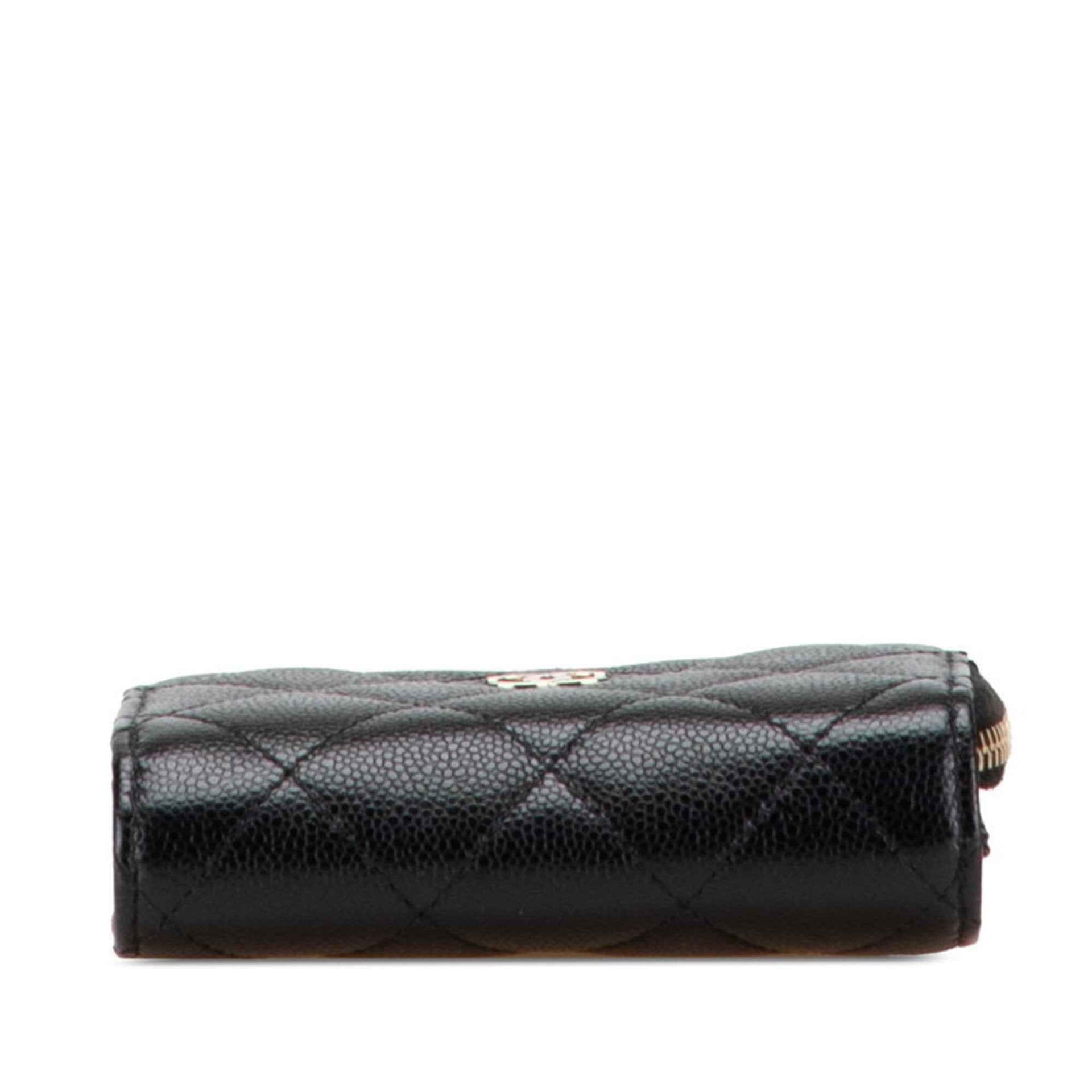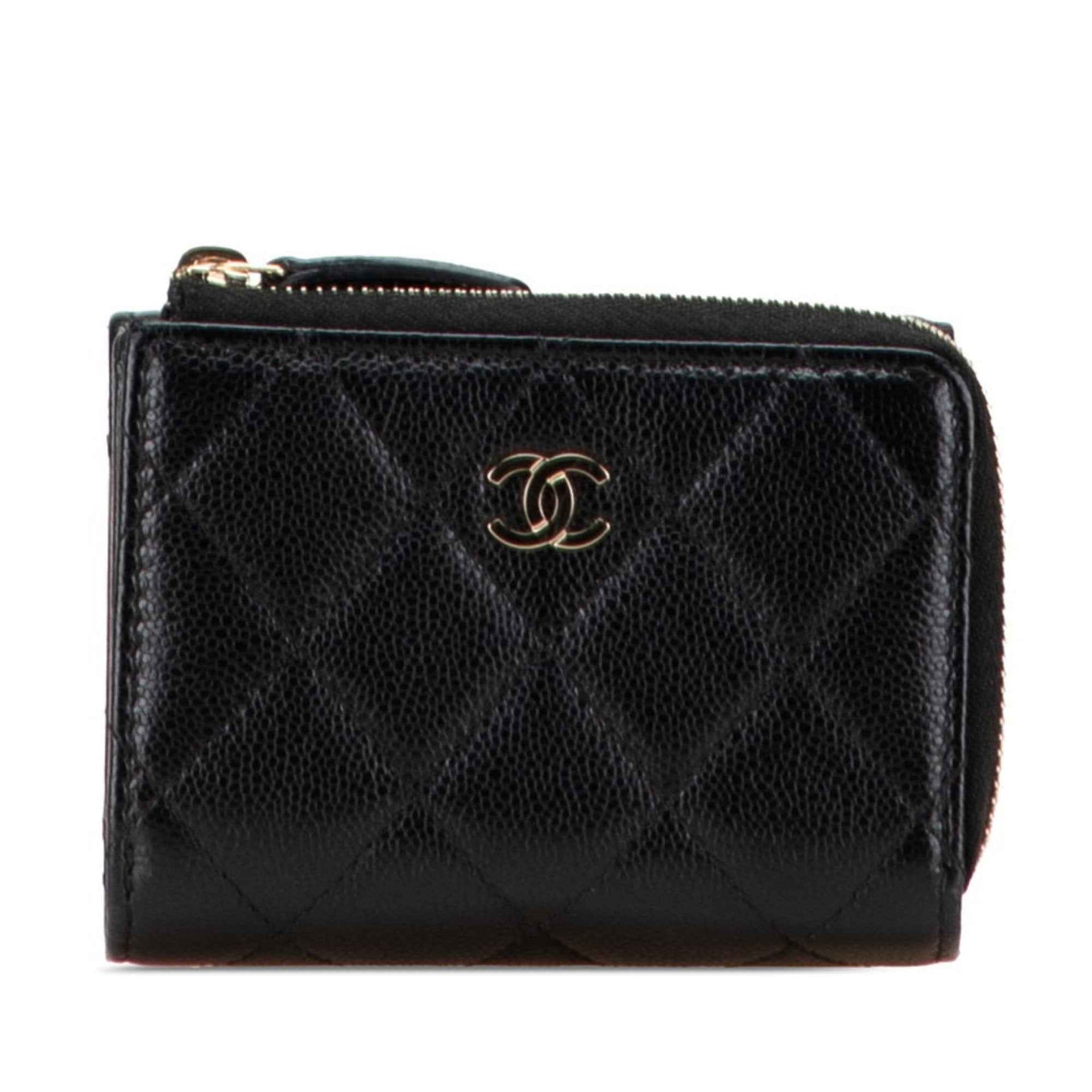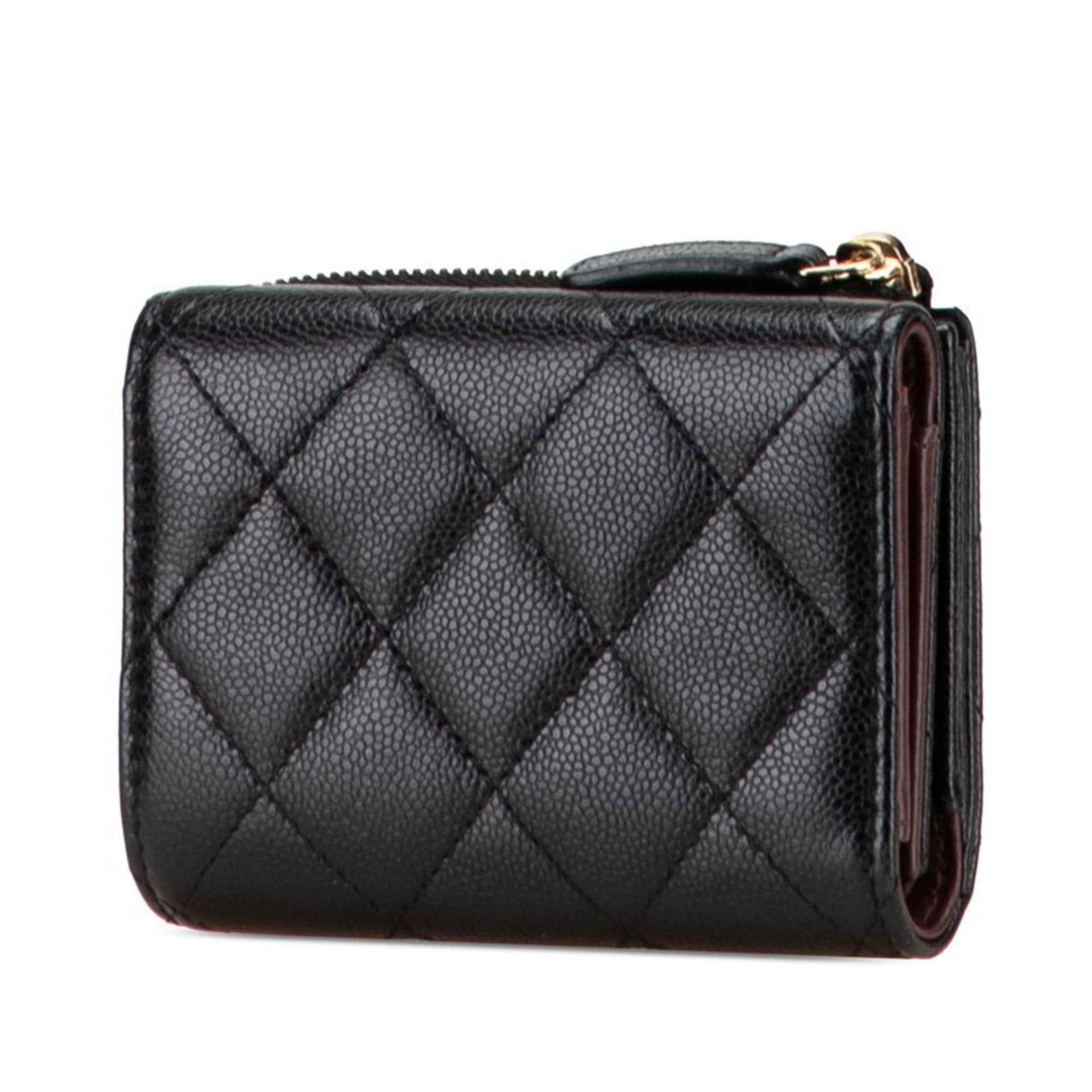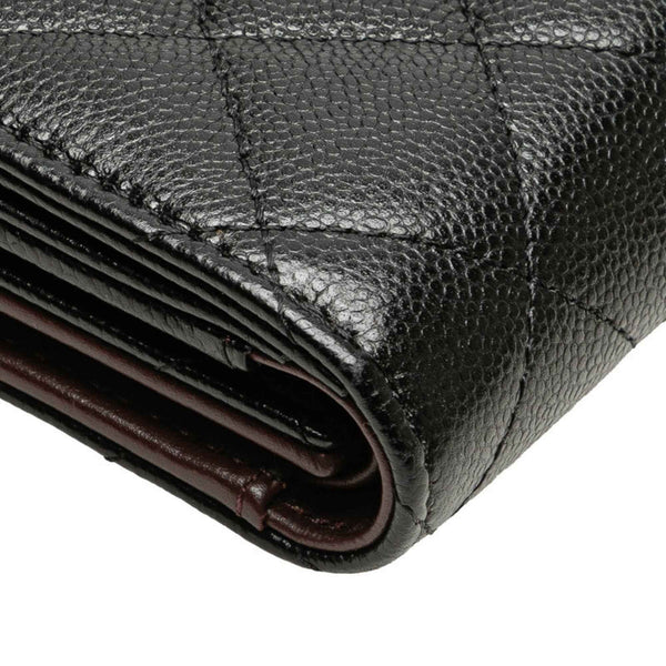 CHANEL Matelasse Coco Mark Tri-fold Wallet in Black Caviar Skin for Women