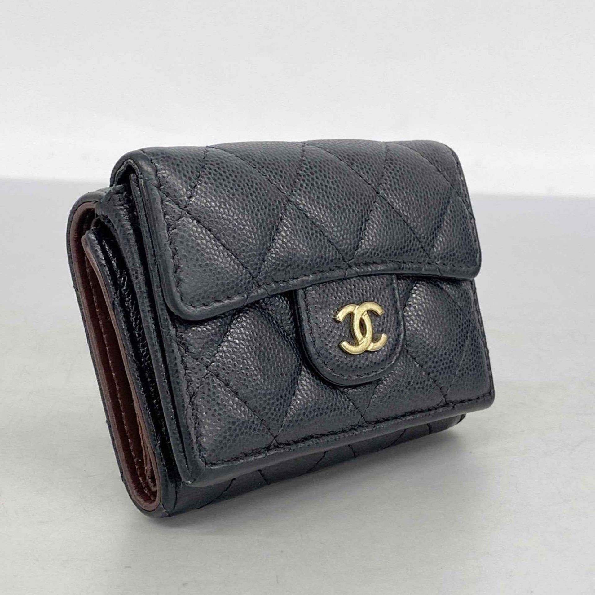 Chanel Matelasse Tri-fold Wallet in Caviar Leather, Black, Women\'s