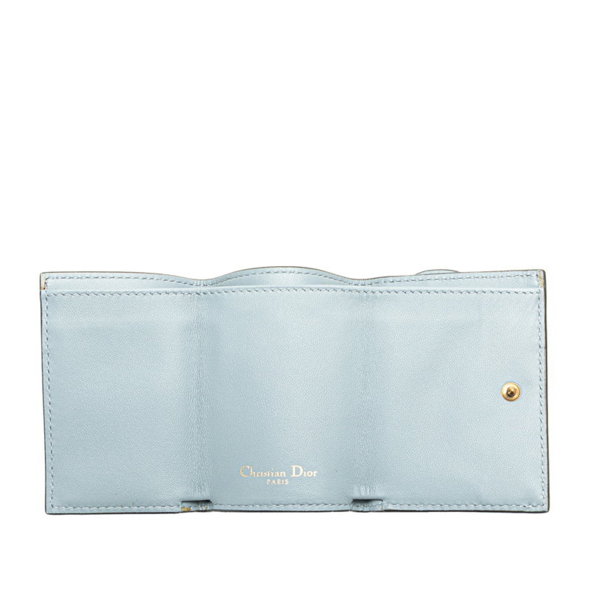 Christian Dior Dior Saddle Lotus Compact Wallet Tri-fold S5653CBAA Grey Leather Women\'s