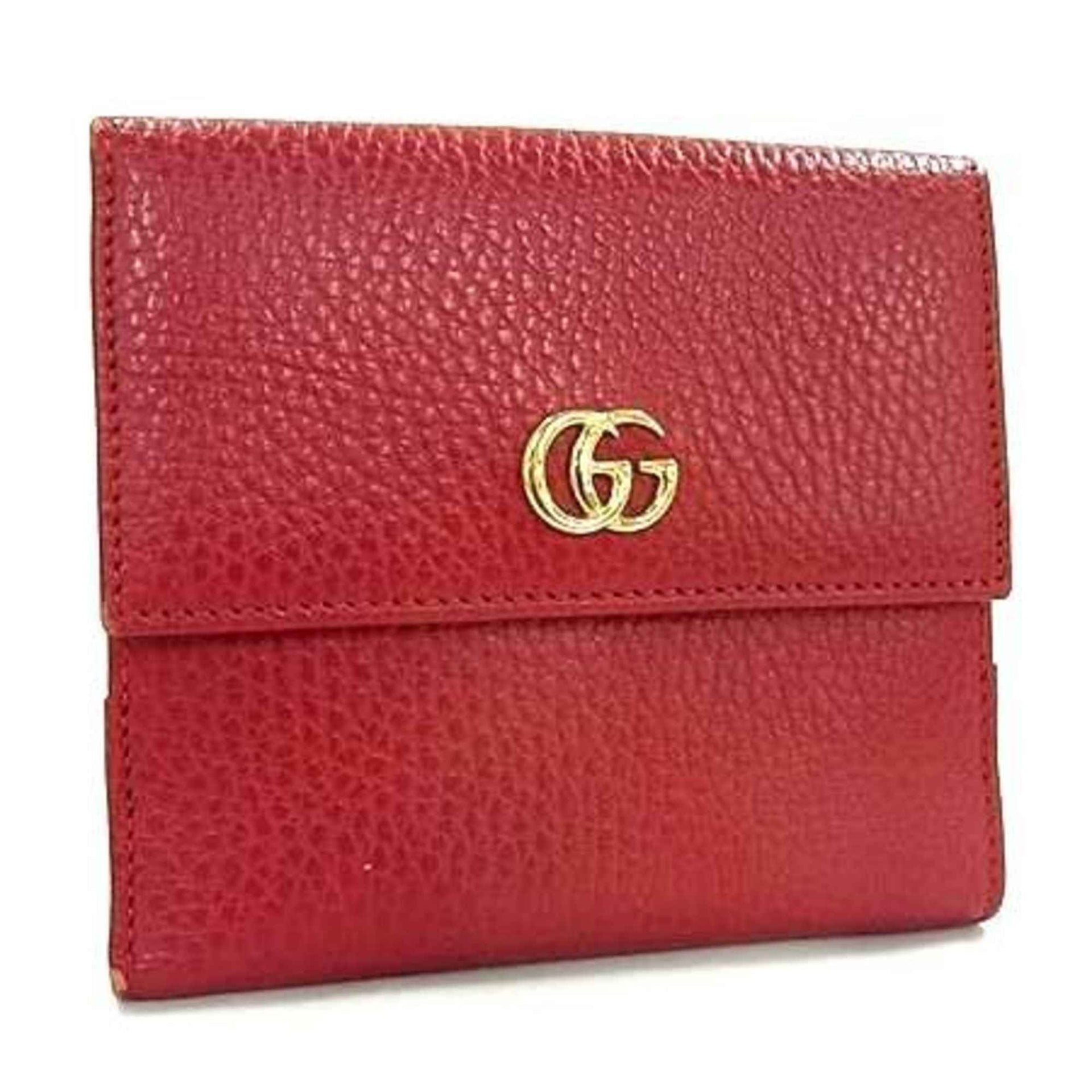 GUCCI GG Marmont Wallet 456122 Red Leather Women\'s Bifold
