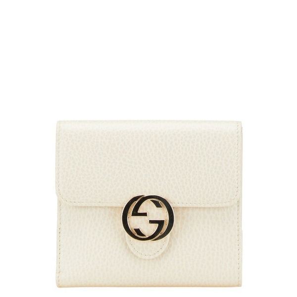 Gucci Interlocking G Bifold Wallet 615525 Beige Leather Women\'s GUCCI