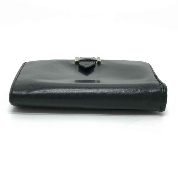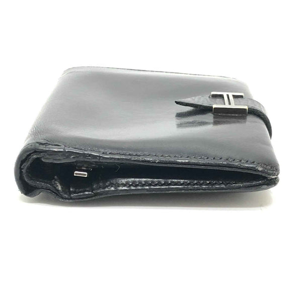 HERMES Bearn Compact Mini Wallet, Silver Hardware, Bifold Box Calf Leather, Women\'s, Black