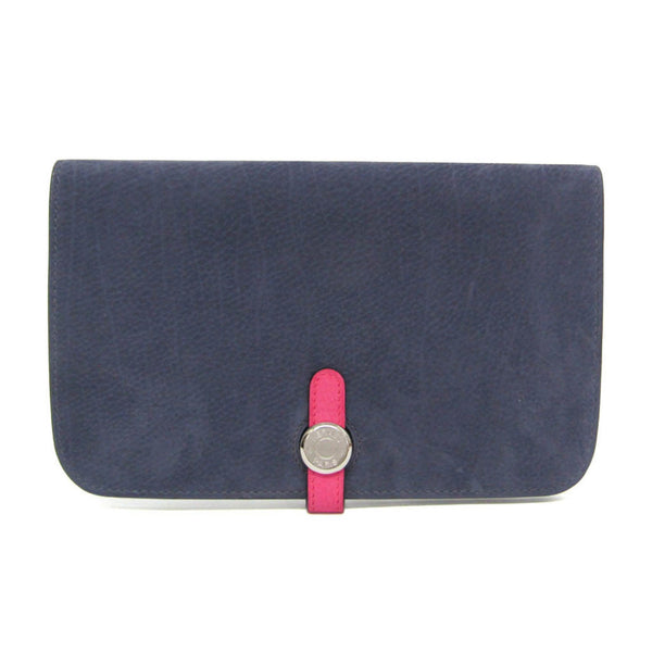 Hermes Dogon GM Men,Women Leather Long Wallet (bi-fold) Navy,Pink