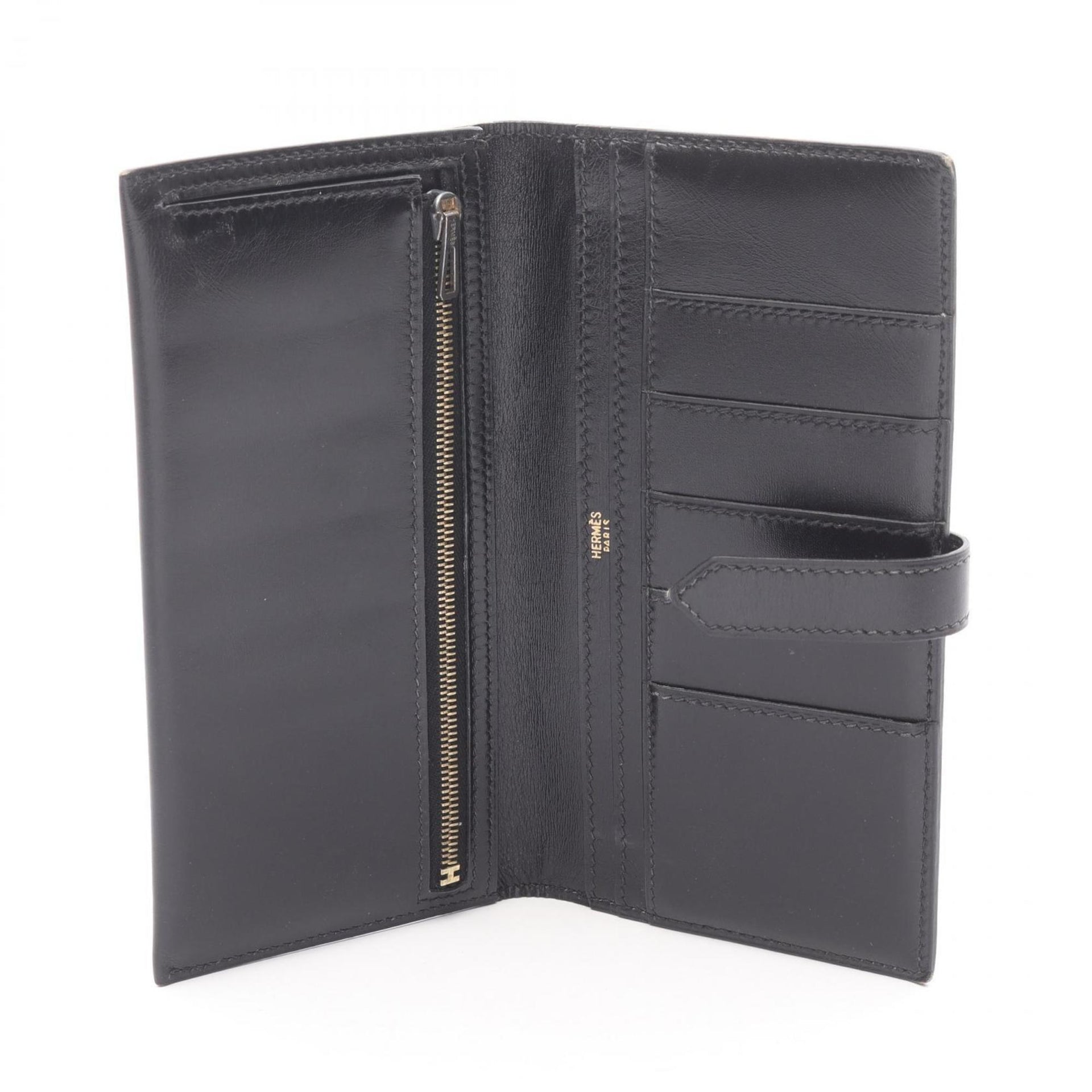 Hermes Hermès Bearn Soufflet Bi-fold Long Wallet in Calfskin Box Calf Leather, Black