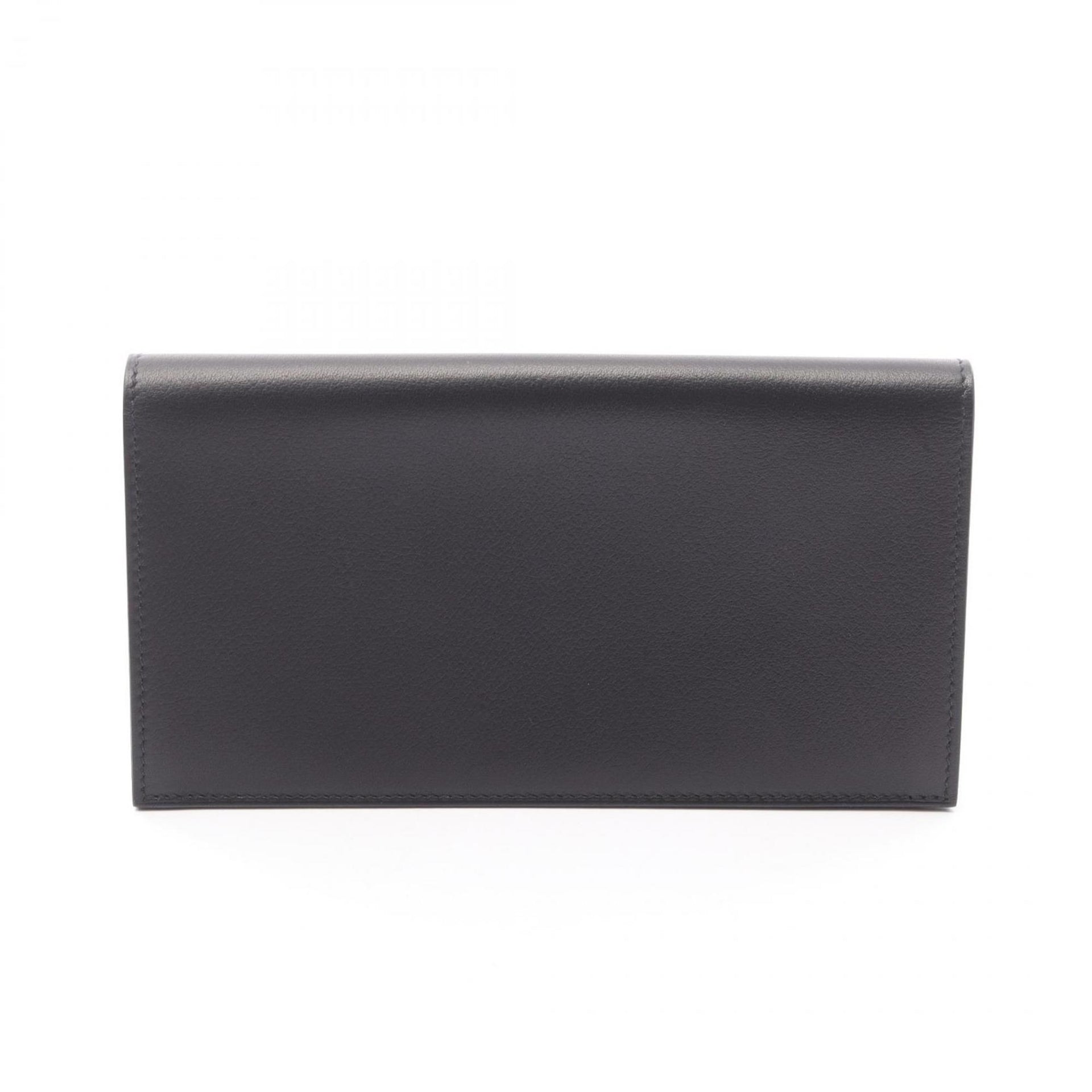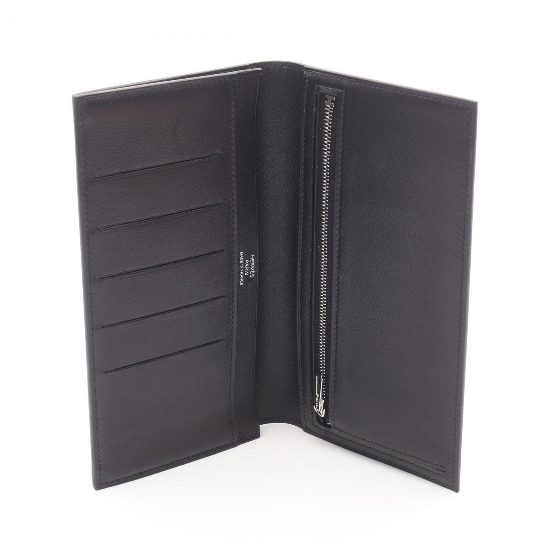 Hermes Hermès Citizen Twill Long Silkin Bifold Wallet Leather Evercolor Men\'s Black