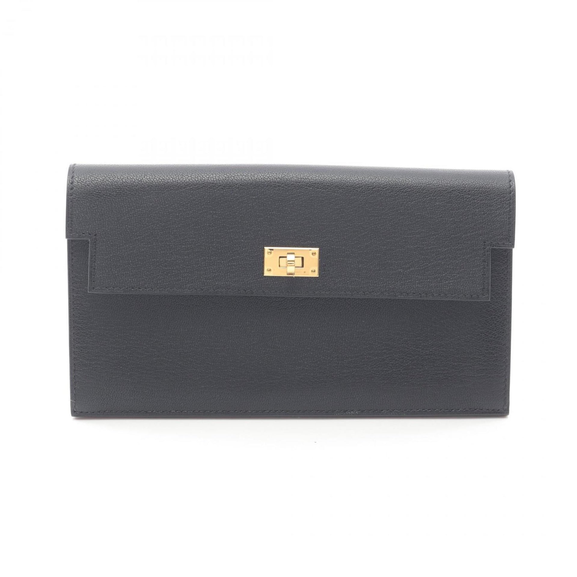 Hermes Hermès Kelly Pocket Long Bifold Wallet, Leather Chevre Sham Killa, Women\'s, Black, H085047CC89