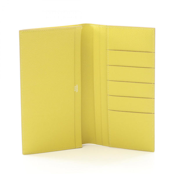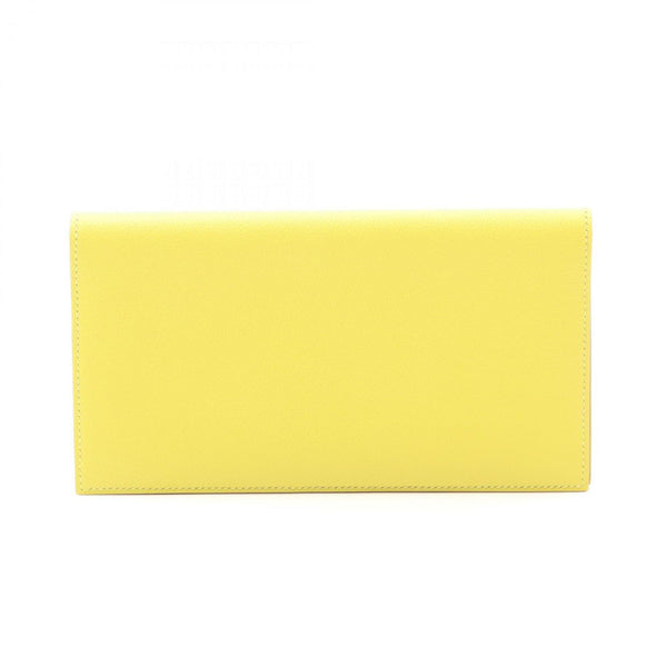Hermes Hermès MC2 Fleming Souffle Bifold Long Wallet, Leather, Evercolor, Women\'s, Yellow