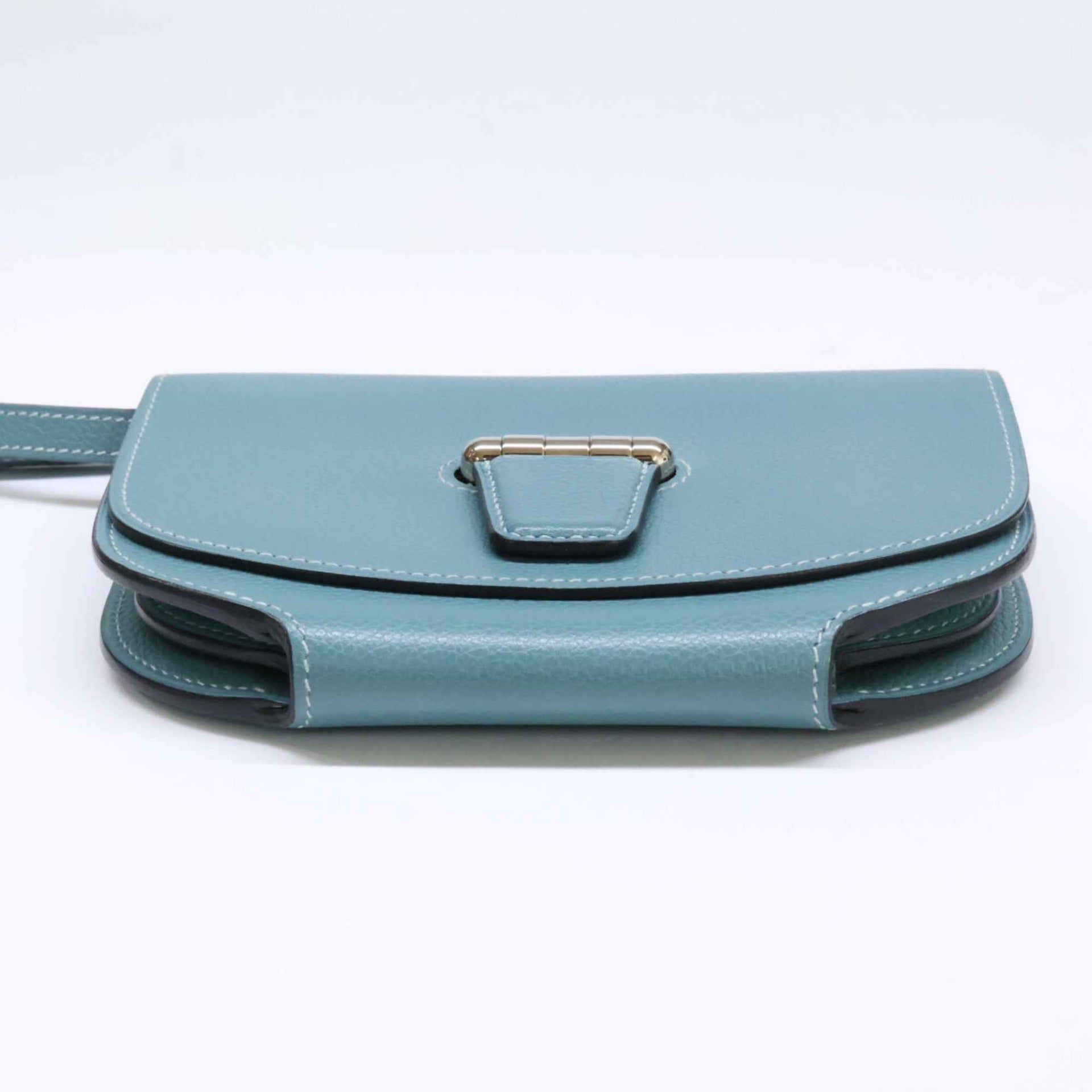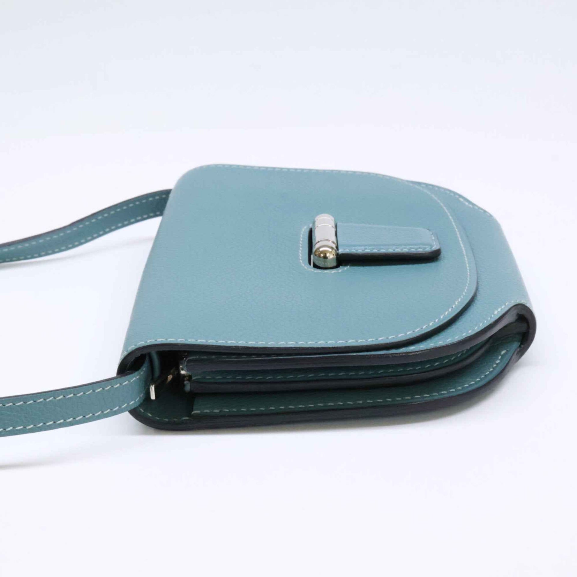 HERMES Mini Conbainer Shoulder Wallet Bag in Evercolor Leather with R Stamp, Ciel Design and Silver Hardware, Women\'s