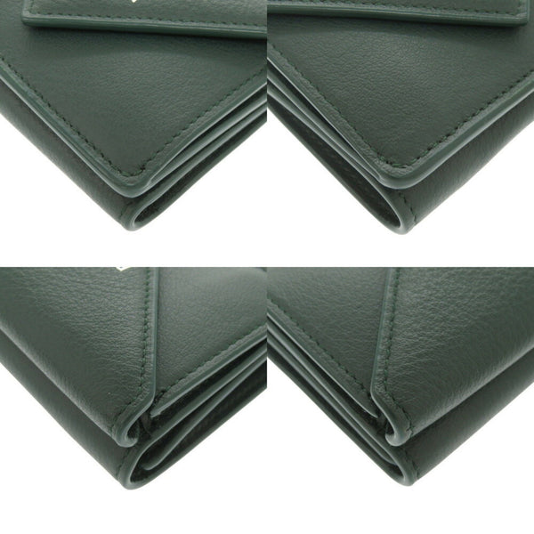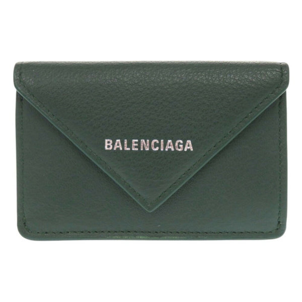 Like new Balenciaga Paper Mini Wallet 391446, green leather tri-fold wallet, 0707BALENCIAGA