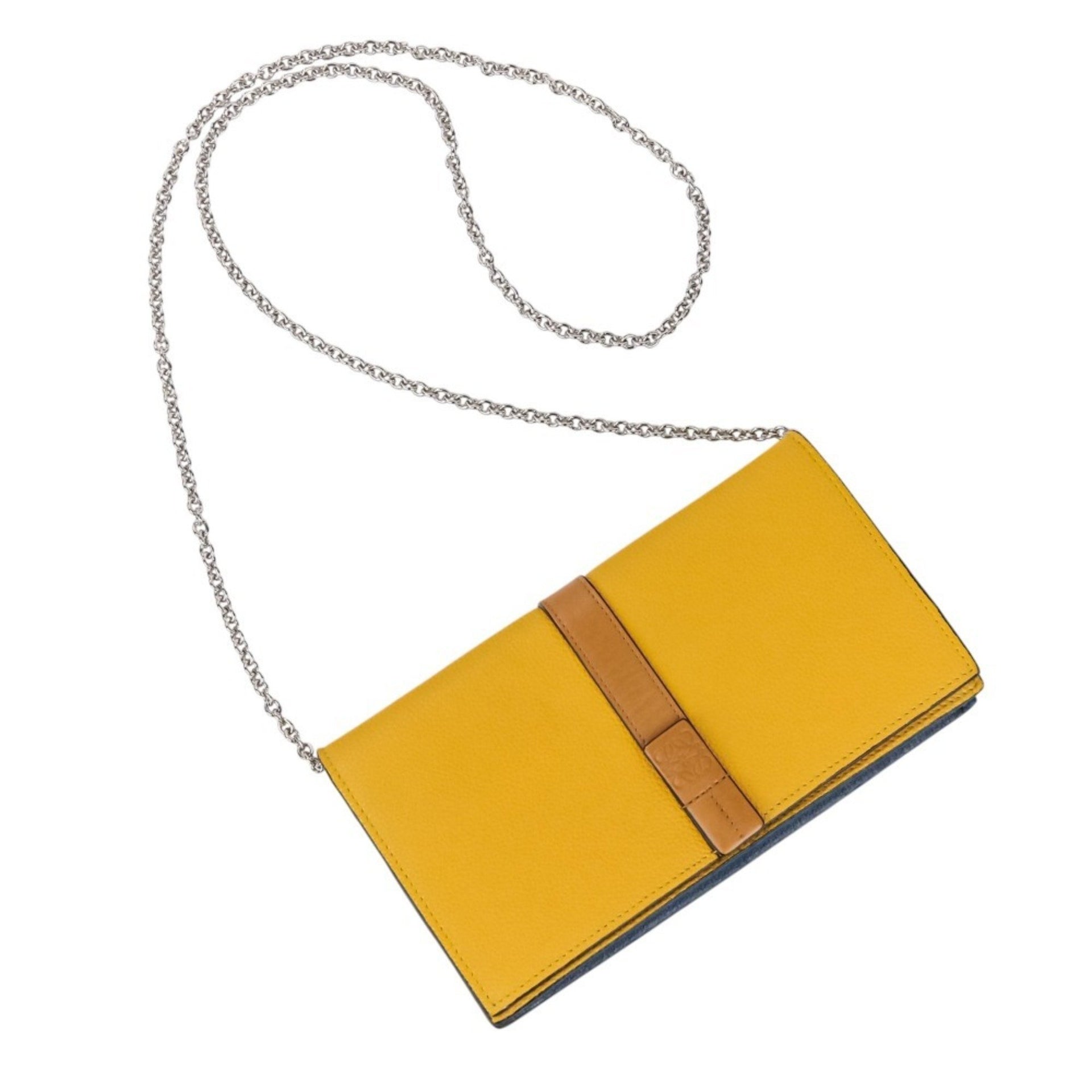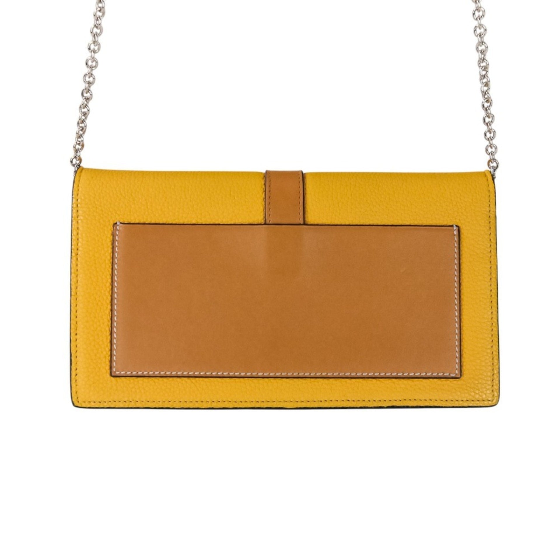 LOEWE Anagram Leather Chain Wallet Shoulder Bag Pochette Yellow Women\'s