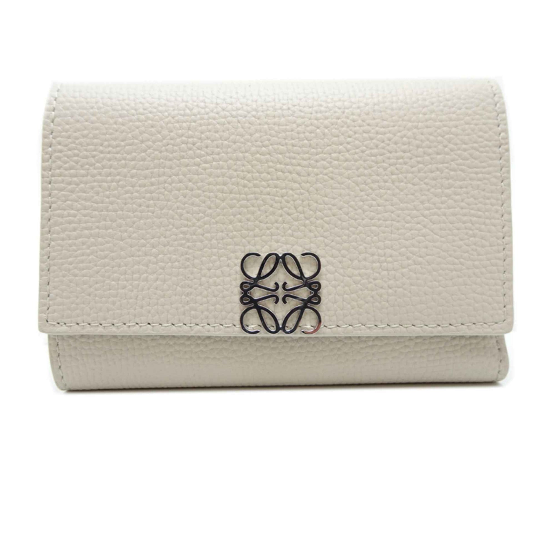 Loewe Anagram Vertical Wallet, Women\'s and Men\'s Tri-fold C821S33XO7, Leather Light Boost (White)
