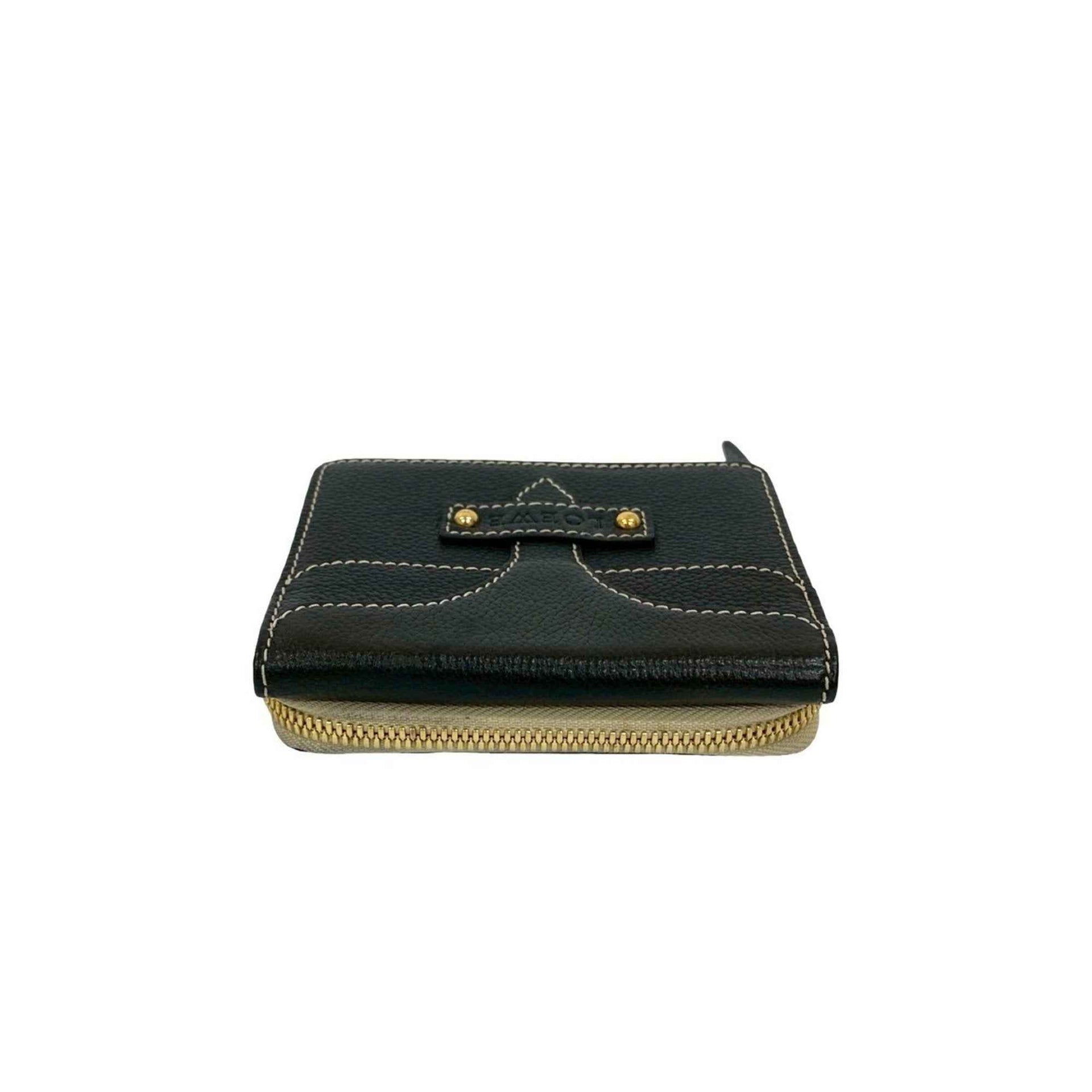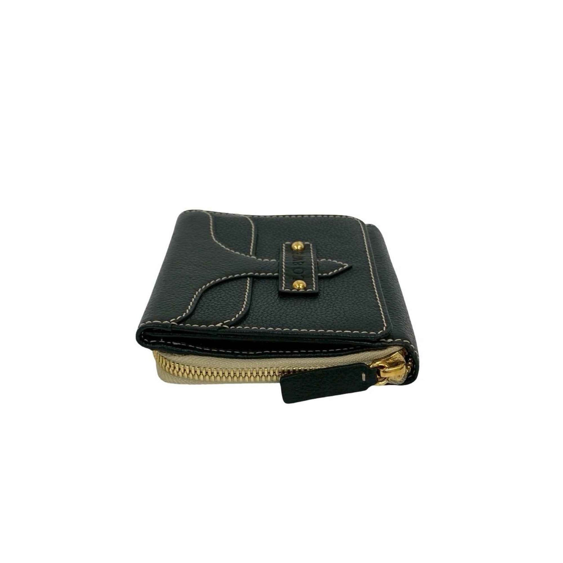 LOEWE Logo Embossed Leather Round Zip Bifold Wallet Black 416-8