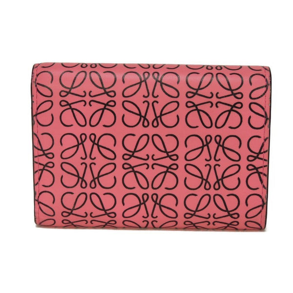 LOEWE Small Vertical Trifold Wallet in Black Calfskin with Repeat Anagram and Pink Pattern (107.55GS97) for Women
