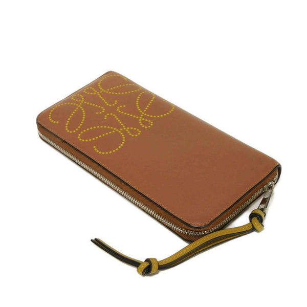 LOEWE Zip Around Long Wallet, Classic Calfskin, Ocher, Two-Tone, Round Anagram, Tan, C500T12X03, Men\'s/Women\'s
