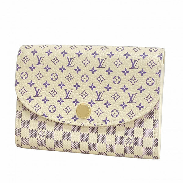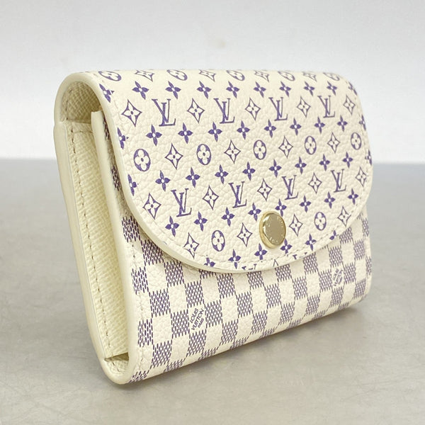 Louis Vuitton Damier Azur Monogram Porte Monnaie Rosary Wallet/Coin Case M25745 White Women's