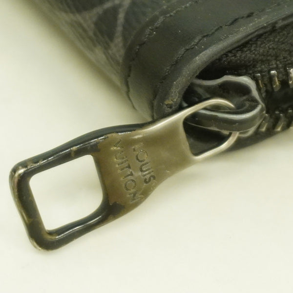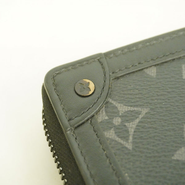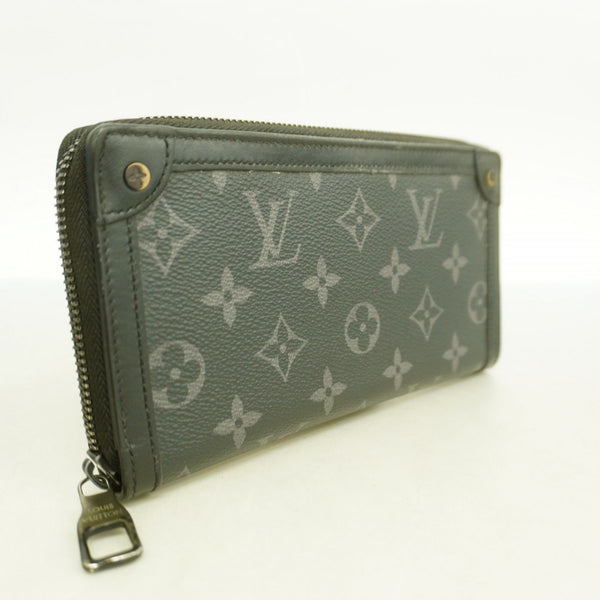 Louis Vuitton Long Wallet Monogram Eclipse Trunk Zippy M80558 Black Grey Men's