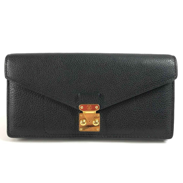 LOUIS VUITTON Louis Vuitton Bi-fold Flap Long Wallet in Calfskin Leather, Unisex, Black