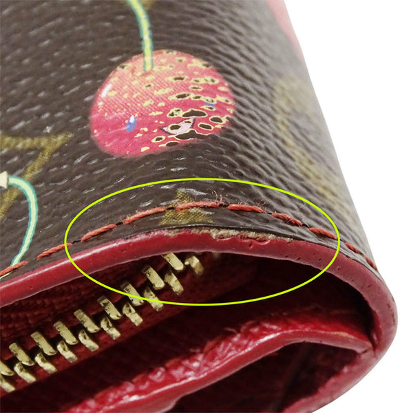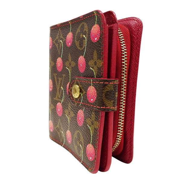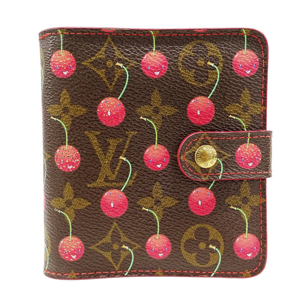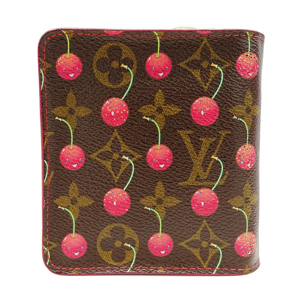 Louis Vuitton LOUIS VUITTON Wallet Women's Bi-fold Monogram Canvas Cherry Compact Zip Red Brown M95005 Takashi Murakami Collaboration