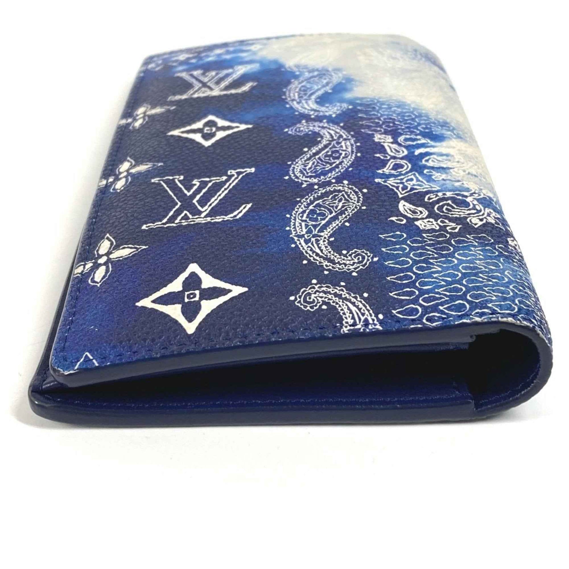 LOUIS VUITTON M81405 Monogram Bandana Portefeuille Brazza Bifold Long Wallet, Leather, Unisex, Blue
