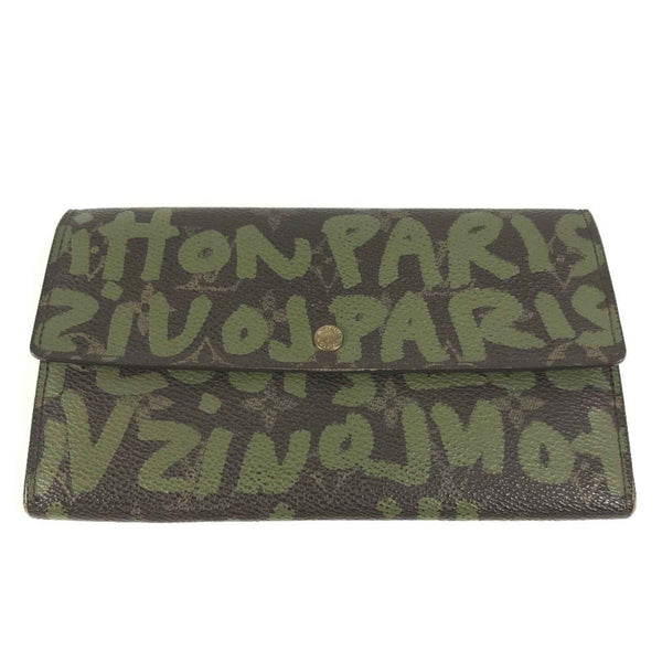 LOUIS VUITTON M92188 Old Monogram Graffiti Pochette Porte Monnaie Credit Flap Long Wallet in Canvas, Unisex, Khaki