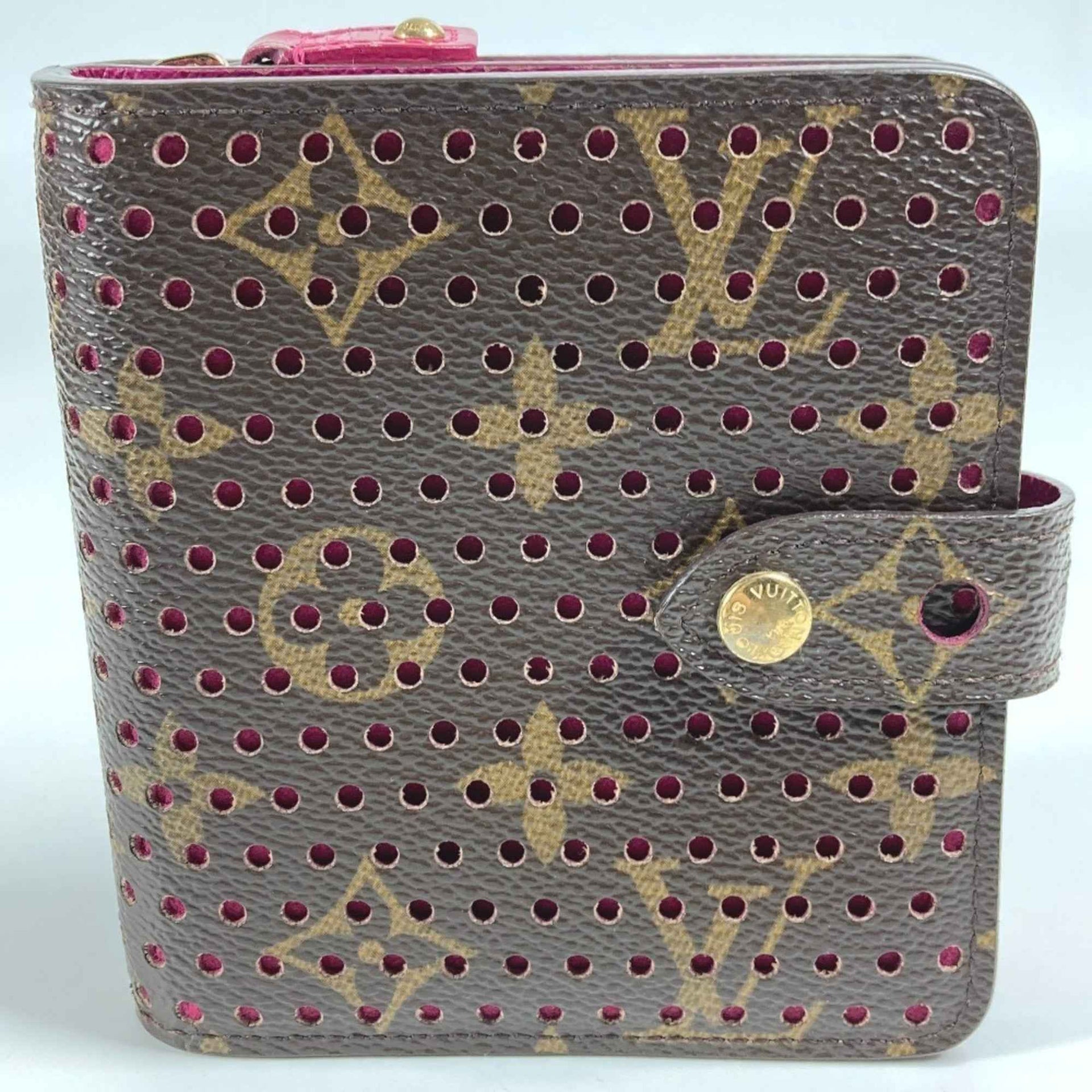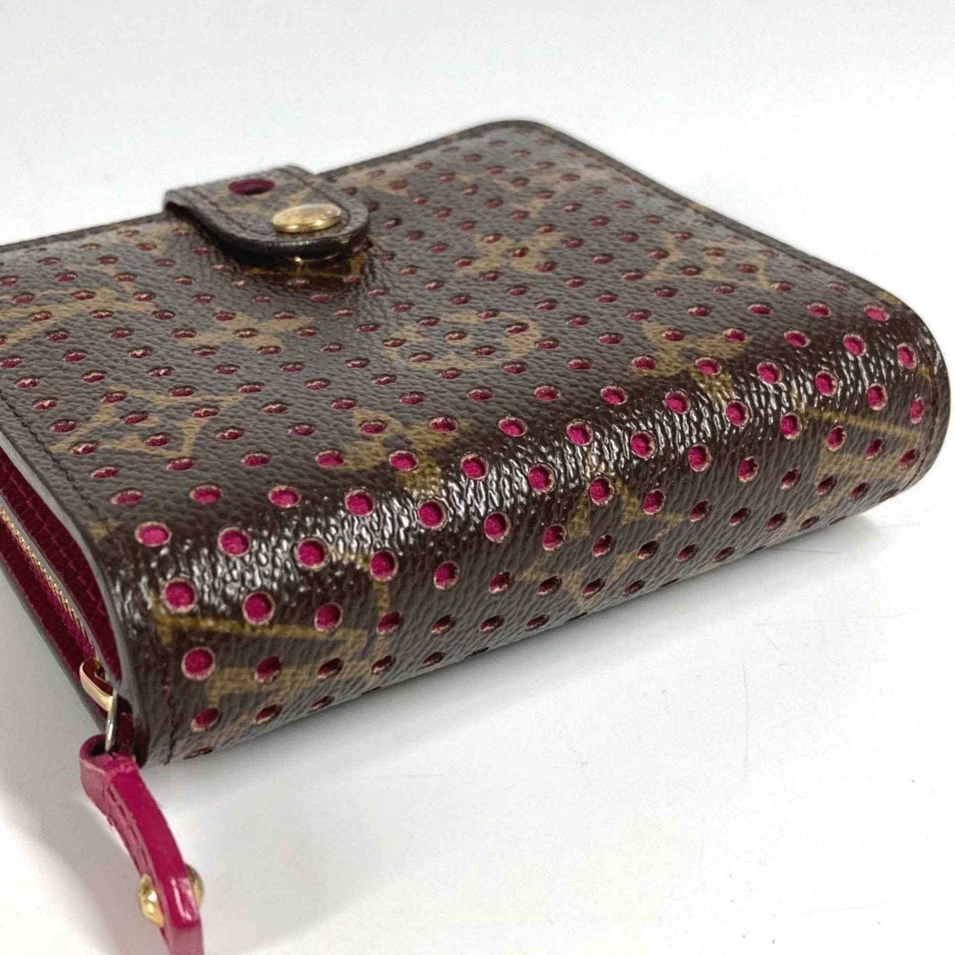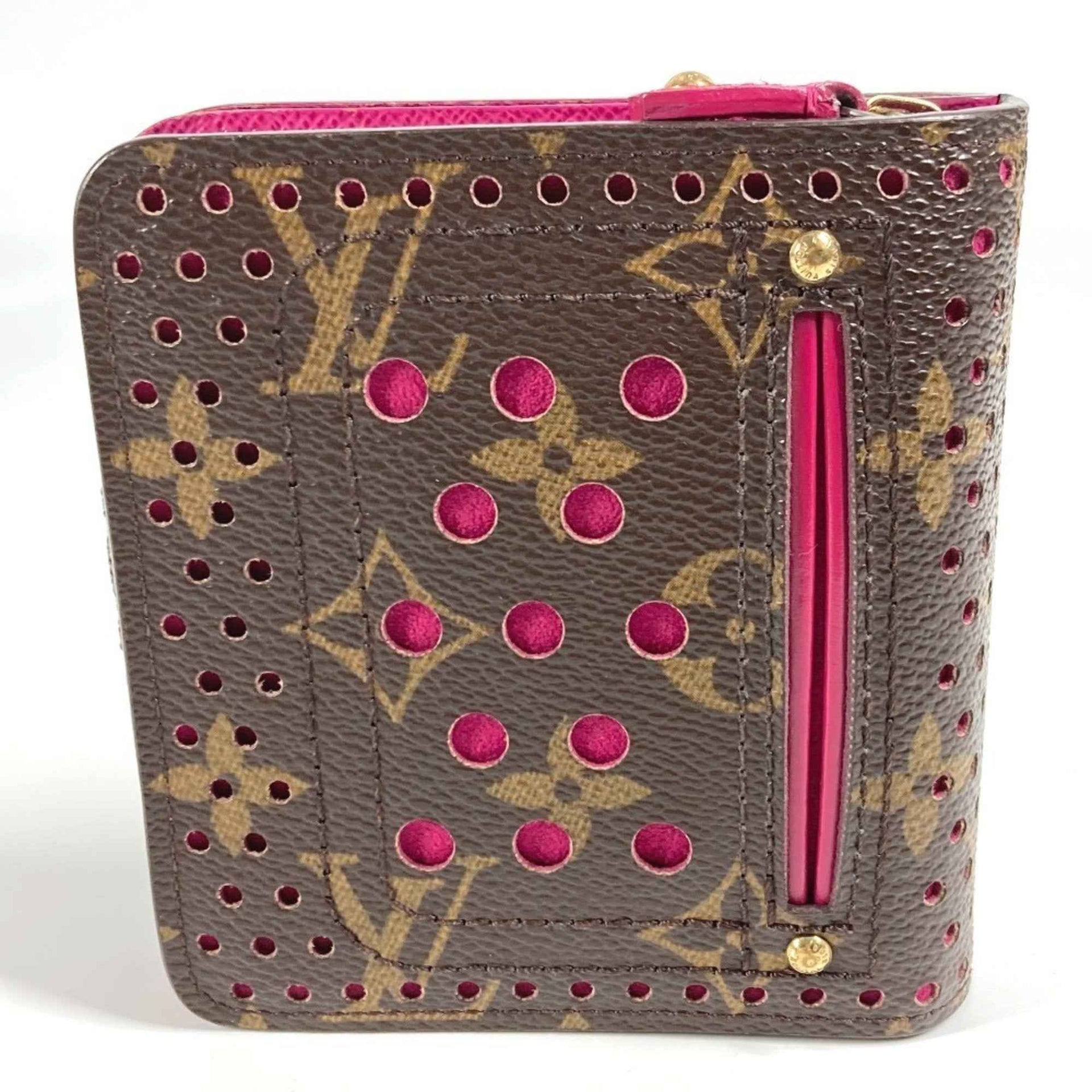 LOUIS VUITTON M95188 Monogram Perforated Compact Zip Wallet, Bi-fold Canvas, Women\'s, Fuchsia Pink