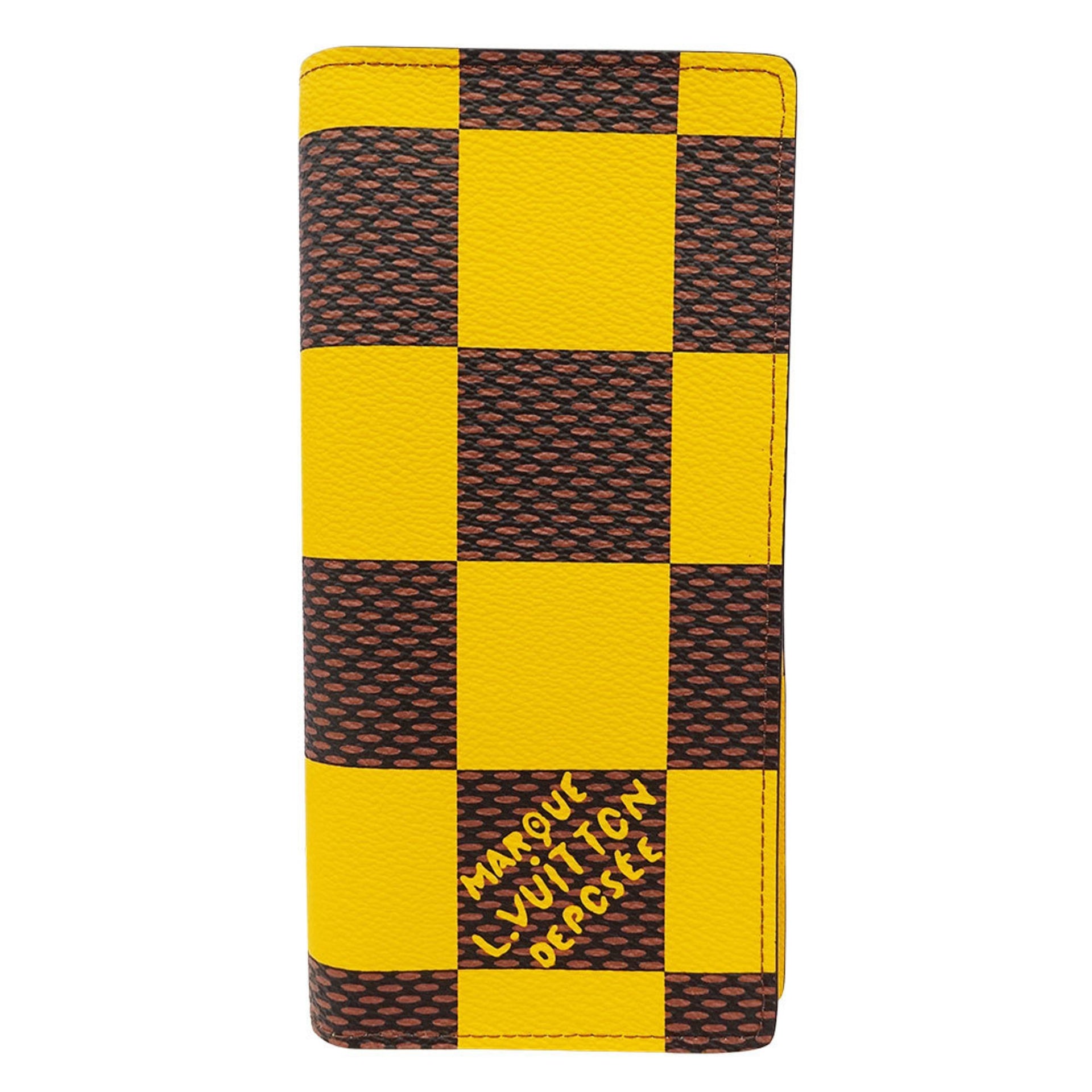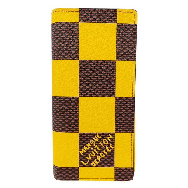 Louis Vuitton Men\'s Damier Pop Canvas Long Wallet, Portefeuille Brazza NM, Yellow/Brown, N40541