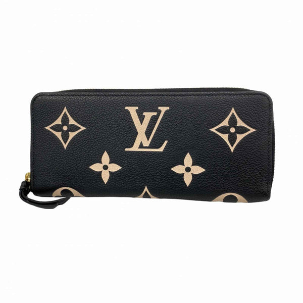 Louis Vuitton Monogram Empreinte Two-Tone Portefeuille Clemence Long Wallet M82338 Black/Beige Women\'s