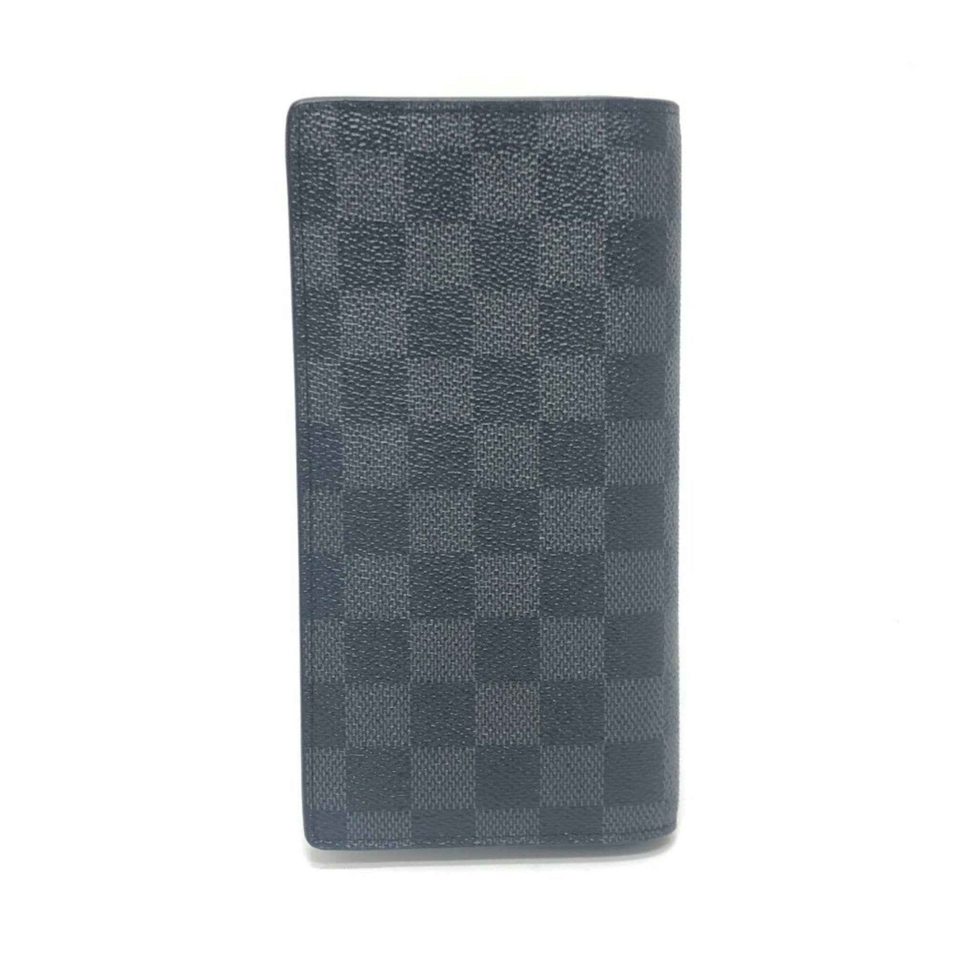 LOUIS VUITTON N62655 Portefeuille Brazza Wallet, Bifold Long Damier Graphite Canvas, Men\'s, Black, Like New