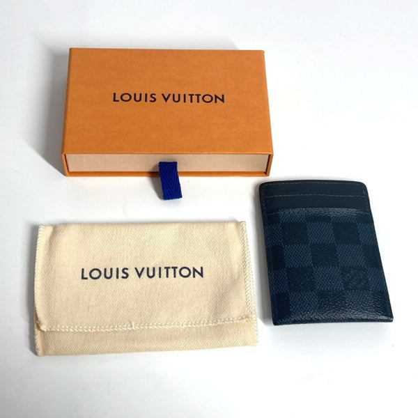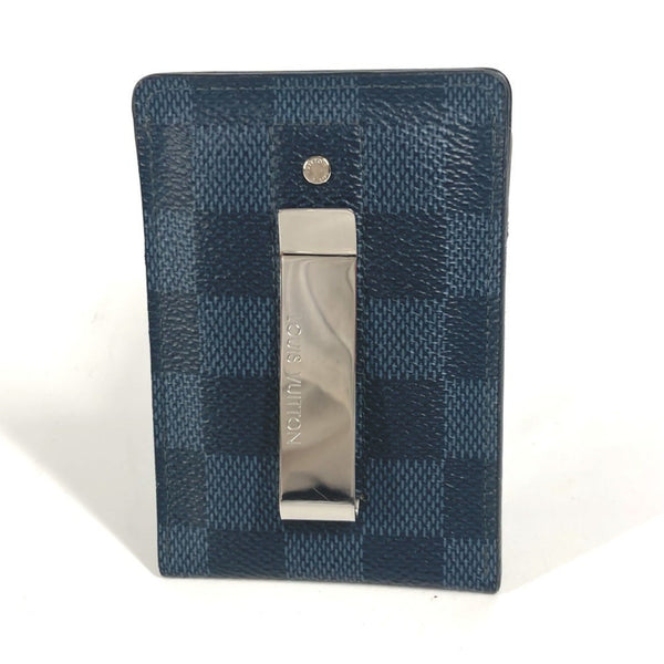 LOUIS VUITTON N63217 Damier Cobalt Porte Carte Pans Business Card Holder Pass Case with Money Clip Holder/Card Canvas Men's Women's Navy