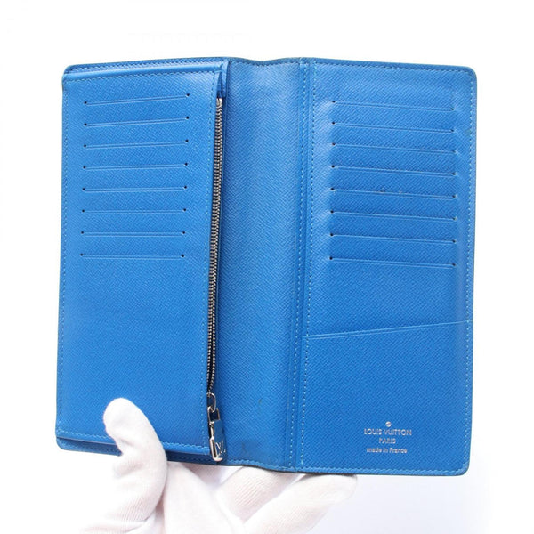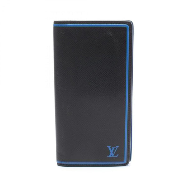 Louis Vuitton Portefeuille Brazza Bi-fold Long Wallet, Leather Taiga, Men's, Black and Blue, M63300