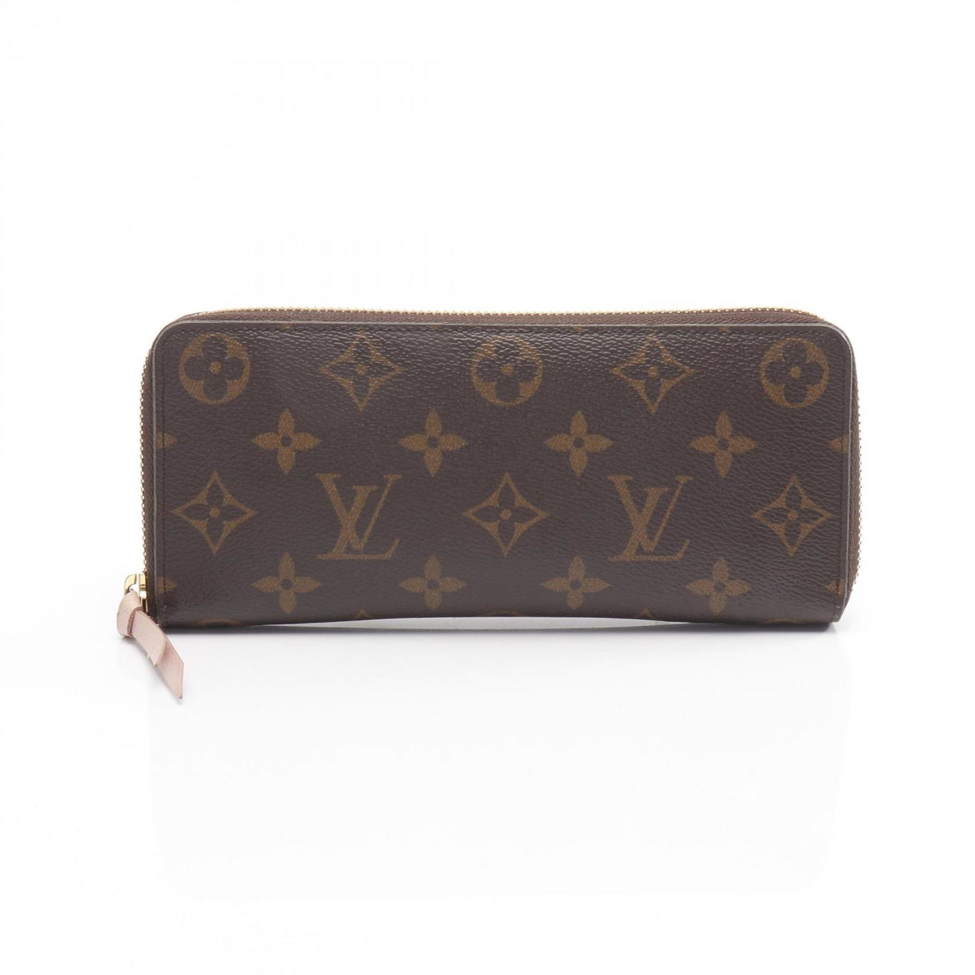 Louis Vuitton Portefeuille Clemence Round Long Wallet, Leather, Monogram, Women\'s, Brown and Pink, M61298