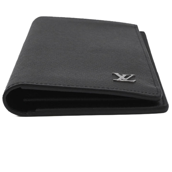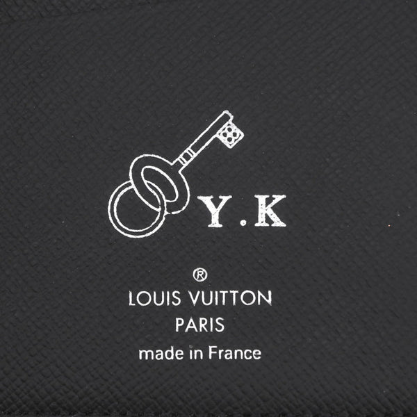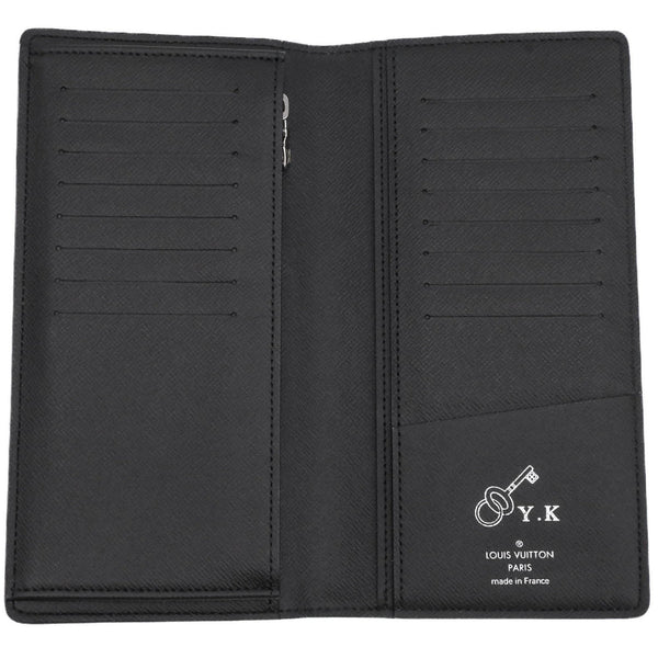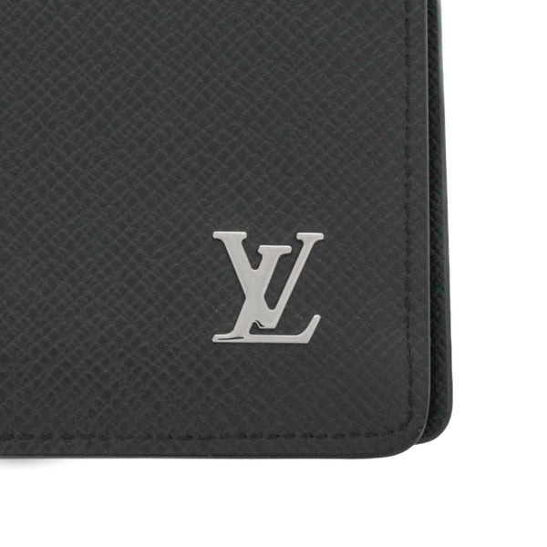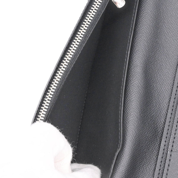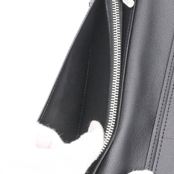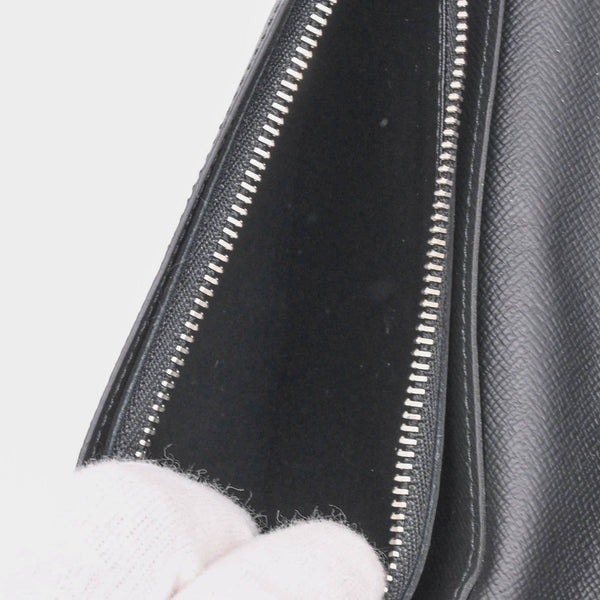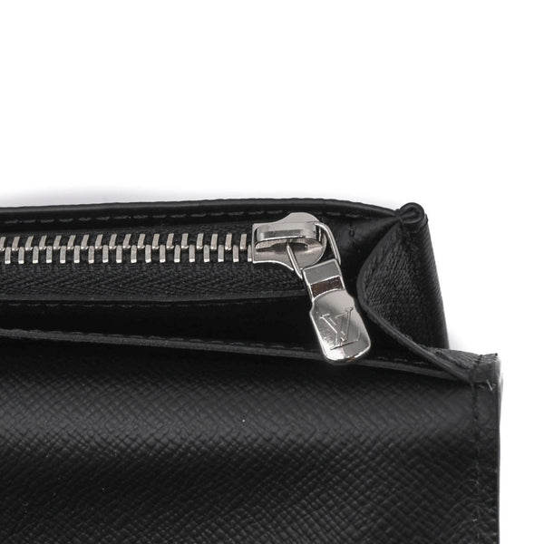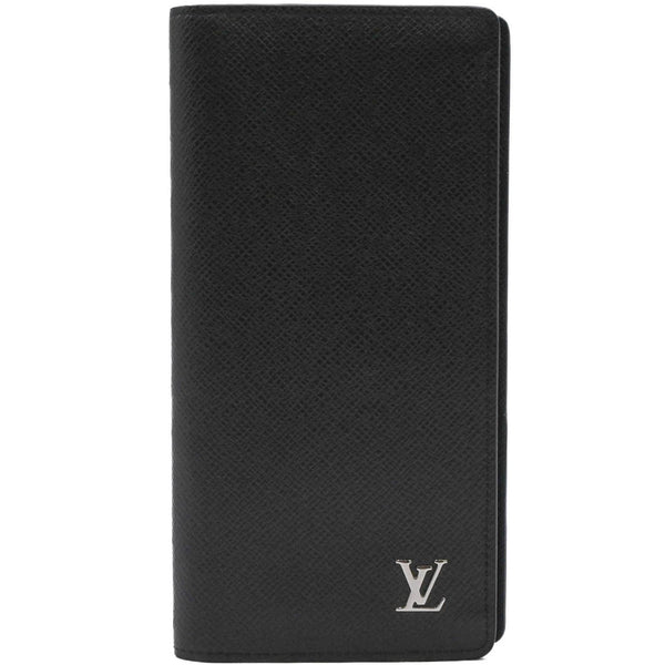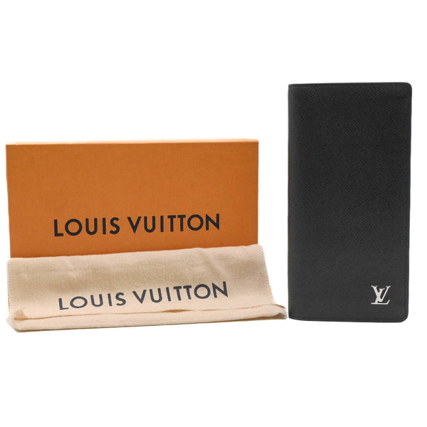 LOUIS VUITTON Taiga Portefeuille Brazza Long Wallet, Ardoise, Black, Men's, M30285, with Initials