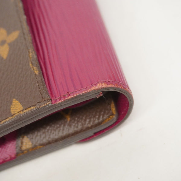 Louis Vuitton Tri-fold Long Wallet Monogram Epi Portefeuille Marie Roulon M60498 Brown Fuchsia Women's